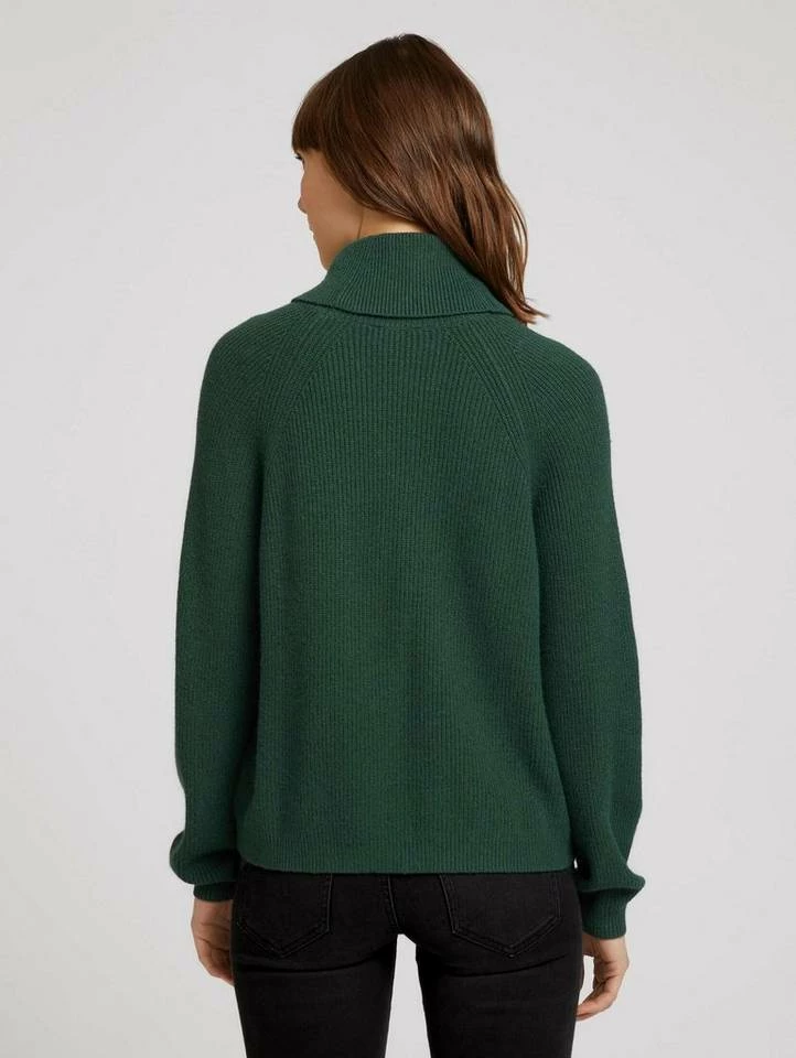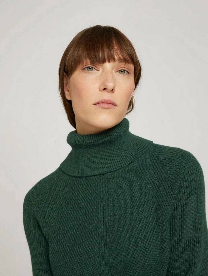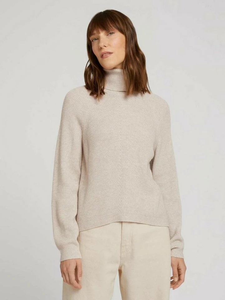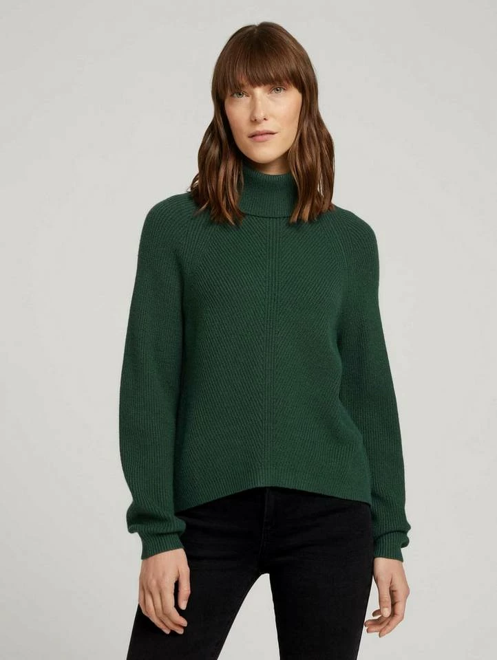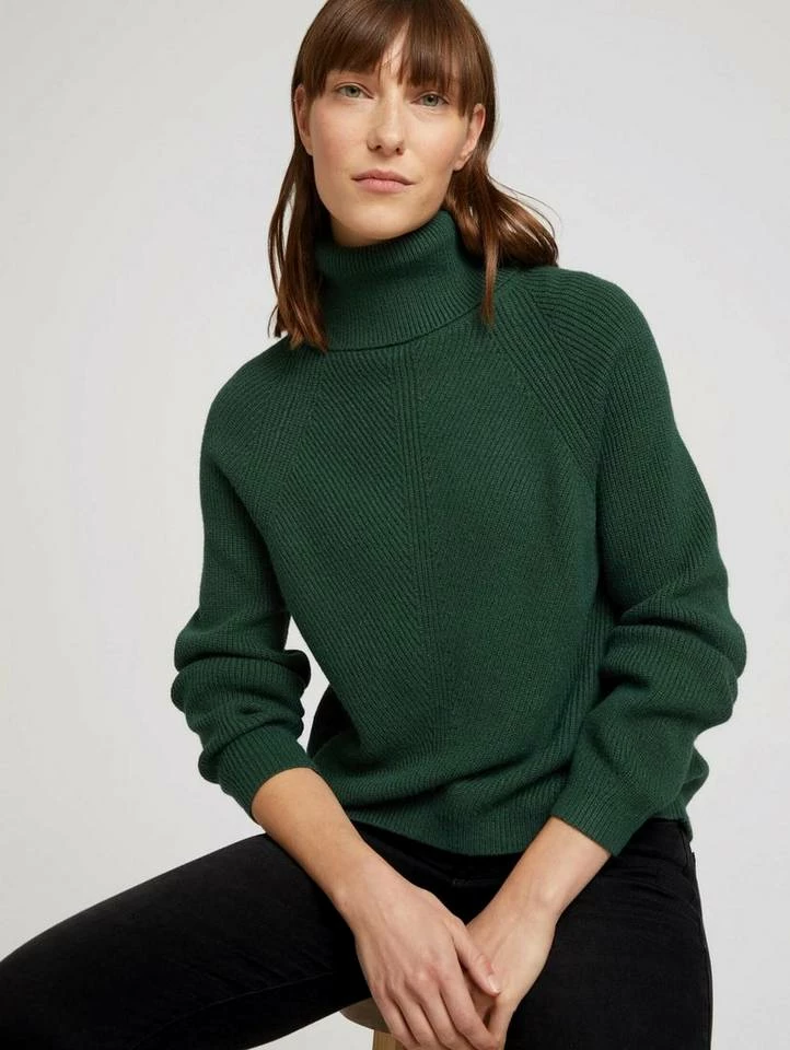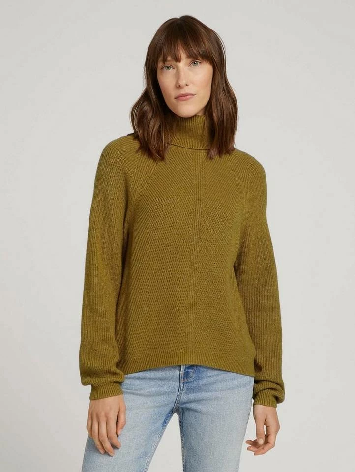 Rollkragenpullover mit Ripp-Struktur für Frauen (langärmlig mit Rollkragen) aus Strick, grober Ripp, mit Raglanärmeln