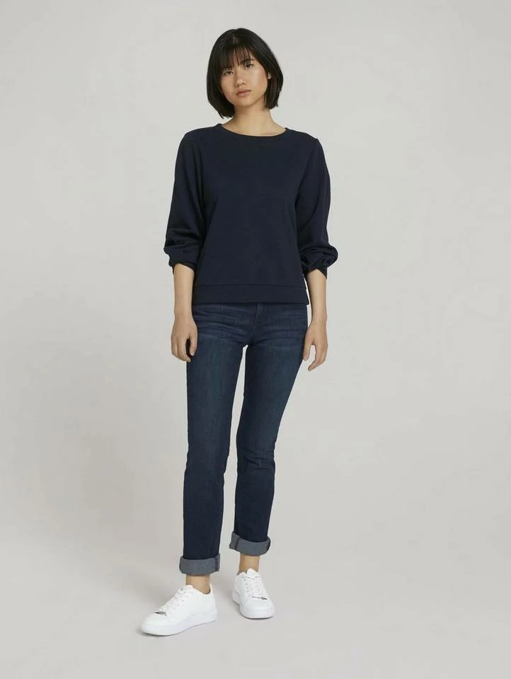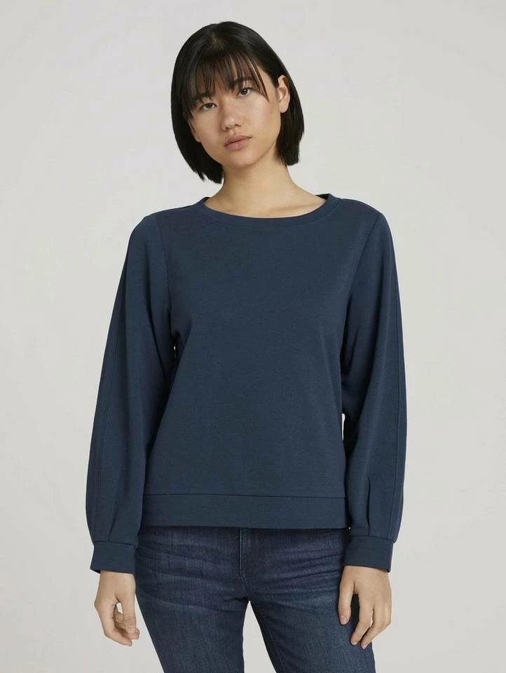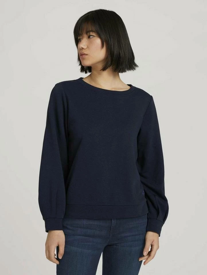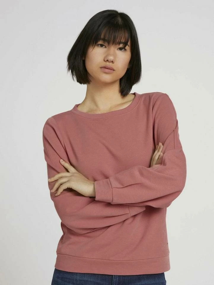 Basic Sweatshirt mit Bio-Baumwolle für Frauen (langärmlig mit Rundhalsausschnitt) mit Bio-Baumwolle aus nachhaltigem Anbau, unifarben, mit Logo Print am Saum, Faltenlegung am Ärmelsaum