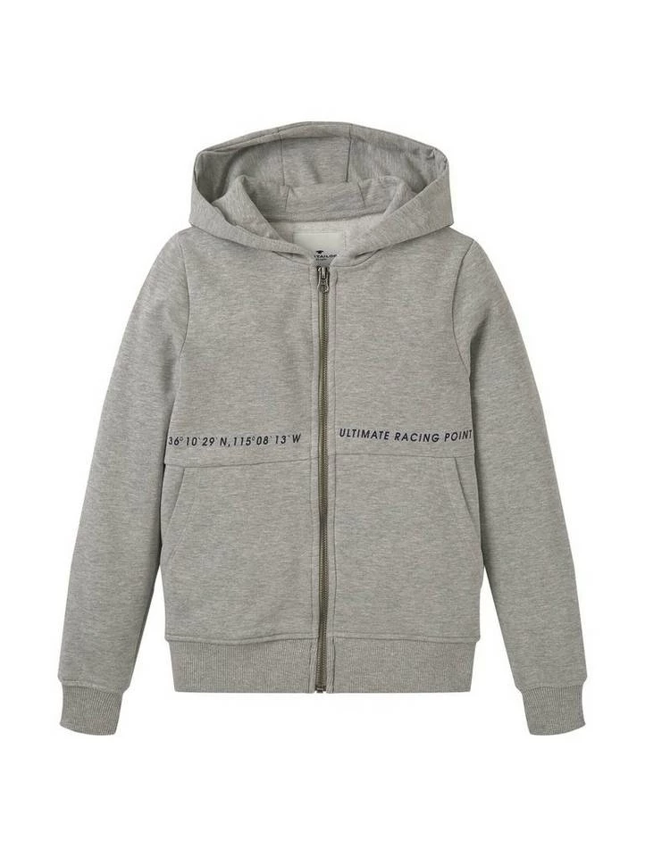 Sweatjacke mit Textprint für Jungen (langärmlig mit Reißverschluss und Kapuze) mit Textprint auf der Frontseite, seitliche Eingrifftaschen, mit Rippbündchen