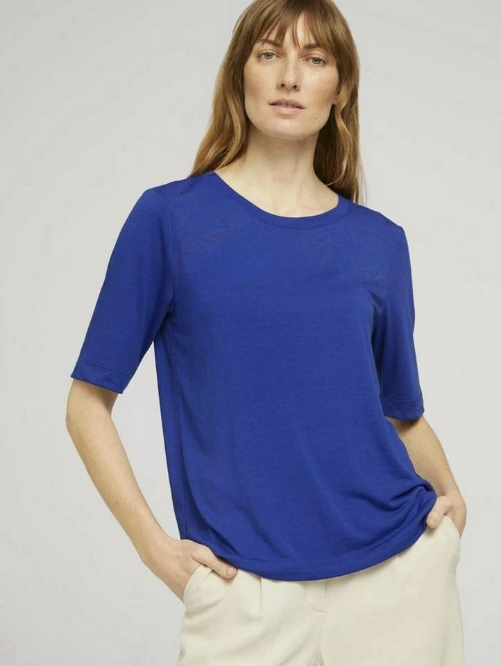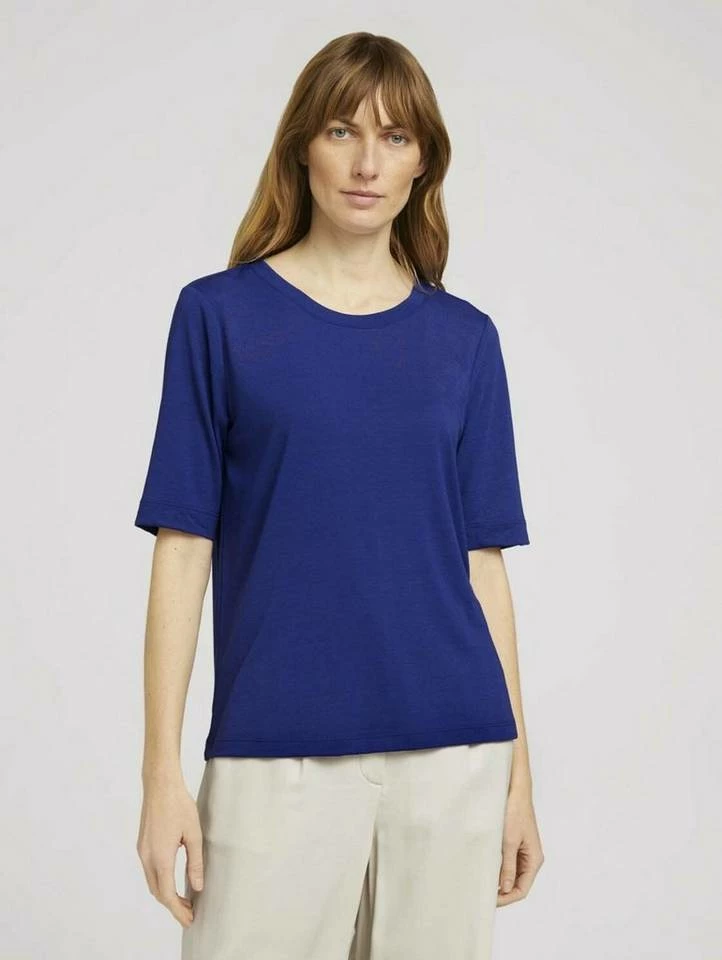 T-Shirt mit feinem Print für Frauen (halbarm mit Rundhalsausschnitt) aus dehnbarem und bequemen Jersey, mit Print an den Schultern