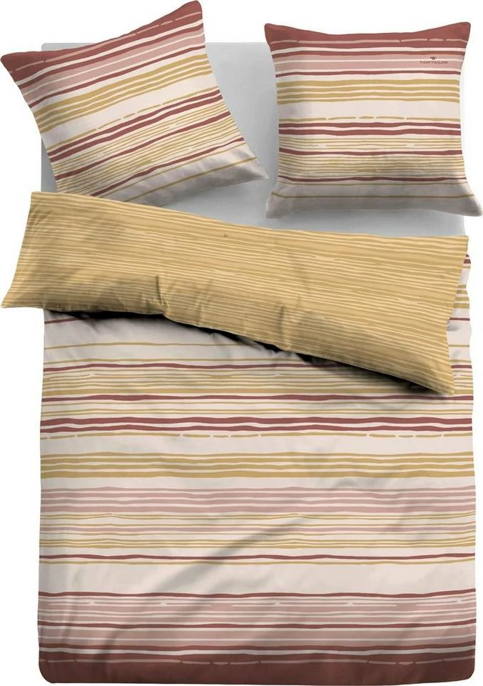 Für gemütlichen Komfort "made in Germany" sorgt die kuschelige und wohlig warme Flanell Bettwäsche »Dean«. Ihr tolles Design macht die Bettgarnitur zum Hingucker im jedem Schlafraum. Dabei punktet sie mit schlichten welligen Streifen und harmonischen Farben. Die Bettwäsche ist hautfreundlich, fühlt sich angenehm weich an und unterstützt einen erholsamen Schlaf. Durch den Anteil von 60% recycelter Baumwolle, anstelle von reiner Baumwolle, wird "Dean" nachhaltig produziert, da weniger Wasser, Energie und Farbstoff benötigt werden. Zudem punktet sie mit pflegeleichten Eigenschaften, wie Maschinenwaschbarkeit bei 60°C und Trocknereignung. Bügeln ist nicht notwendig. Reißverschlüsse erleichtern das schnelle Wechseln nach jeder Wäsche. Die attraktive TOM TAILOR Bettwäsche »Dean« sorgt für mehr Gemütlichkeit im heimischen Schlafzimmer.