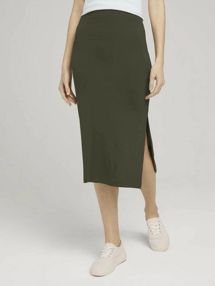 Jersey Midirock mit Schlitz für Frauen (elastischer Bund) aus fließendem und dehnbaren Jersey, mit Seitenschlitz