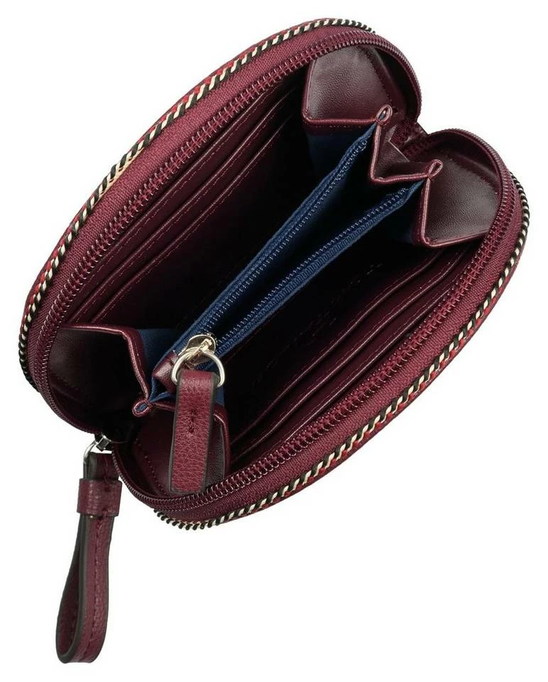 Eigentlich eine schlichte Börse, wäre da nicht das wundervoll zarte rot-schwarz- offwhite gewebte Paspelband, welches die halbrunde Form perfekt in Szene und einen sportiven Akzent setzt. Kleine Geldbörse mit Reißverschluss-Öffnung, innen ein Münzfach mit Reißverschluss, 6 Kartenfächer sowie 2 offene Fächer. Passend dazu sind 3 attraktive Taschenstyles erhältlich.