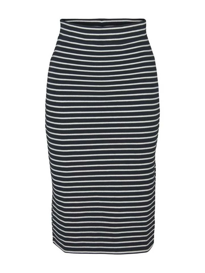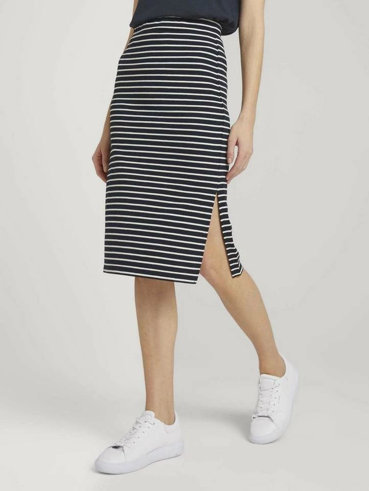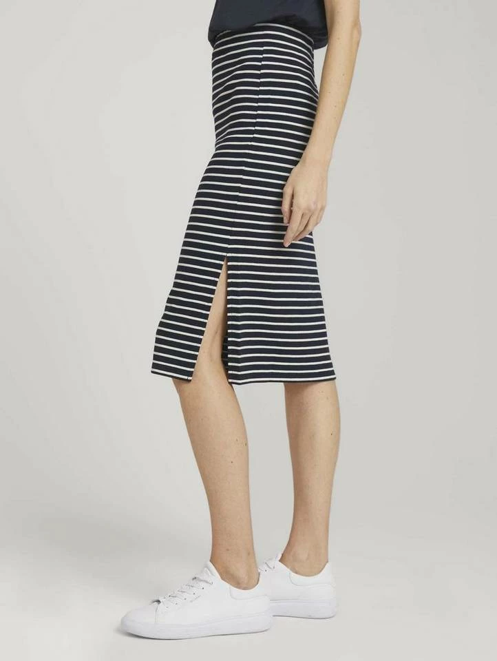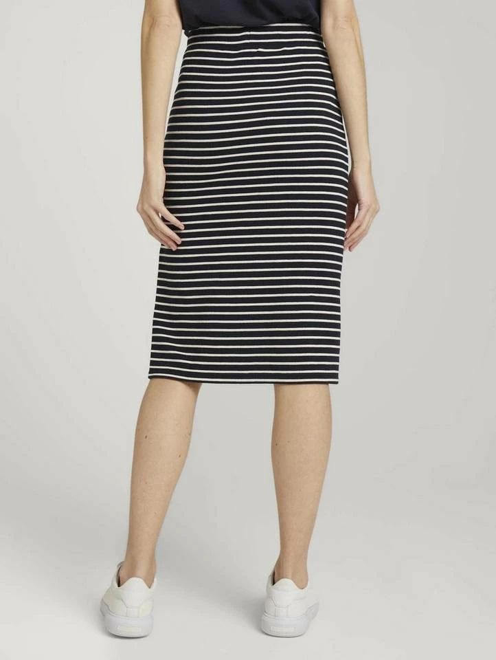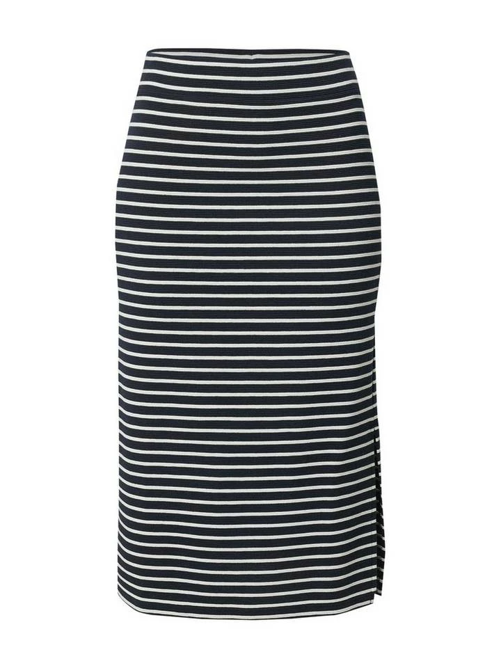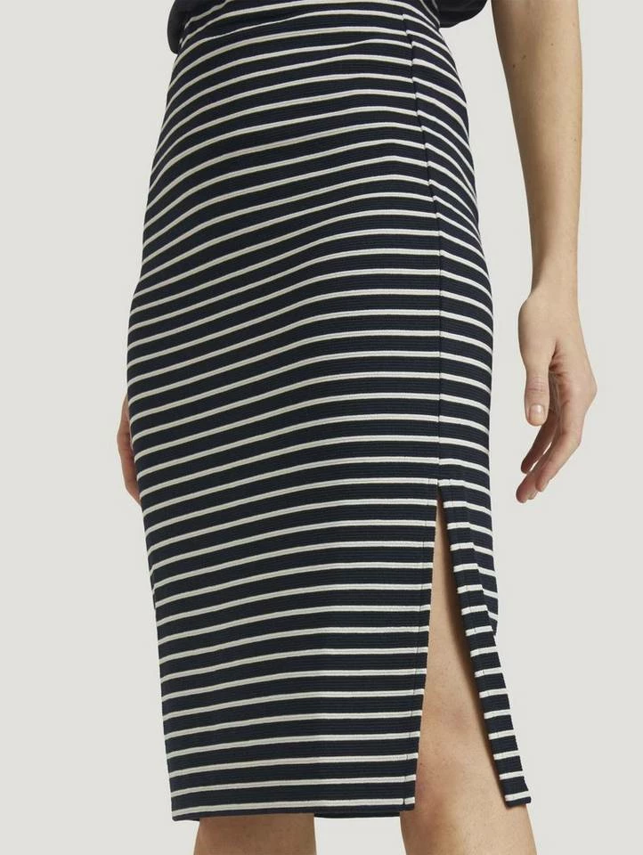 Gestreifter Midirock mit Struktur für Frauen (mit elastischem Bund) aus dehnbarem und pflegeleichten Gemisch, gestreift, mit Ottoman Struktur, mit seitlichem Gehschlitz