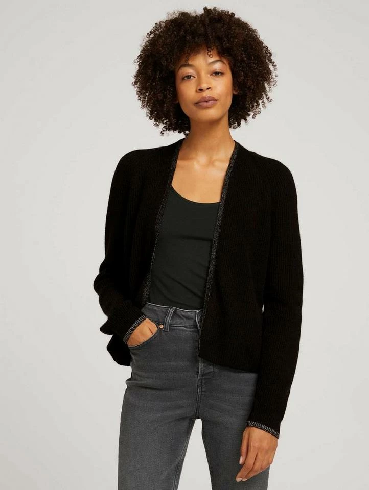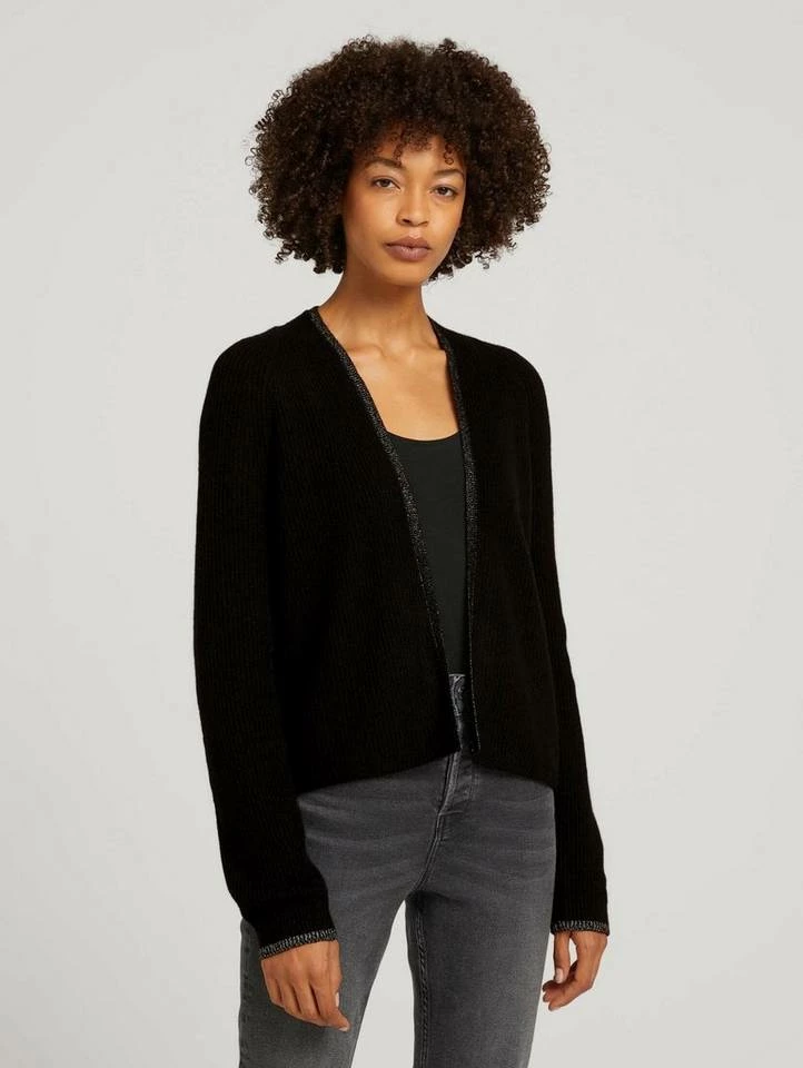 Cardigan mit Glitzerdetails für Frauen (langärmlig mit Schalkragen) mit weichem Wollanteil, mit Glitzerdetails, mit Raglanärmeln