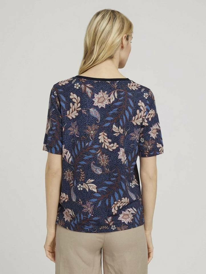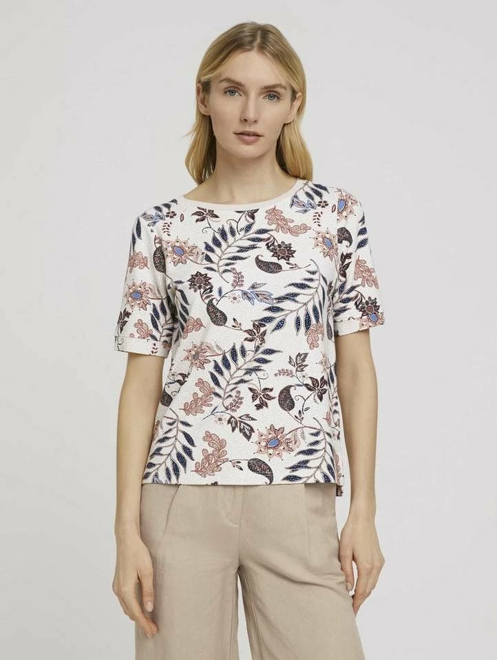 Kurzarm Sweatshirt mit Muster für Frauen (kurzärmlig mit Rundhalsausschnitt) aus weichem und elastischen Sweat, gemustert, Seitenschlitze am Saum