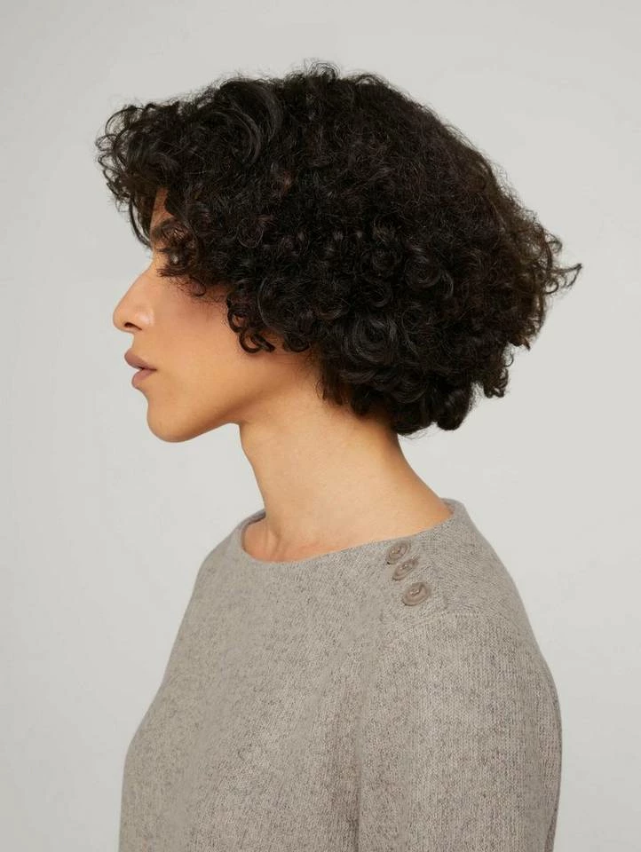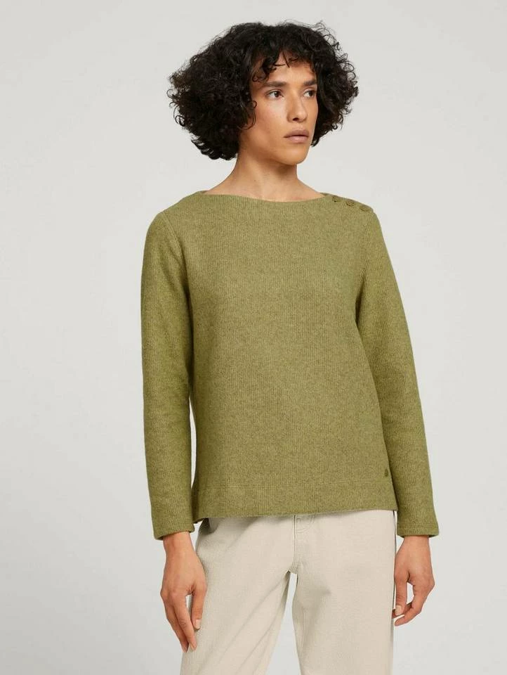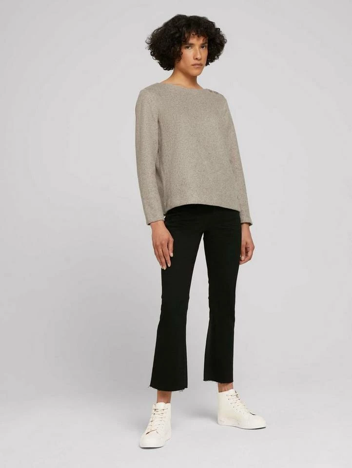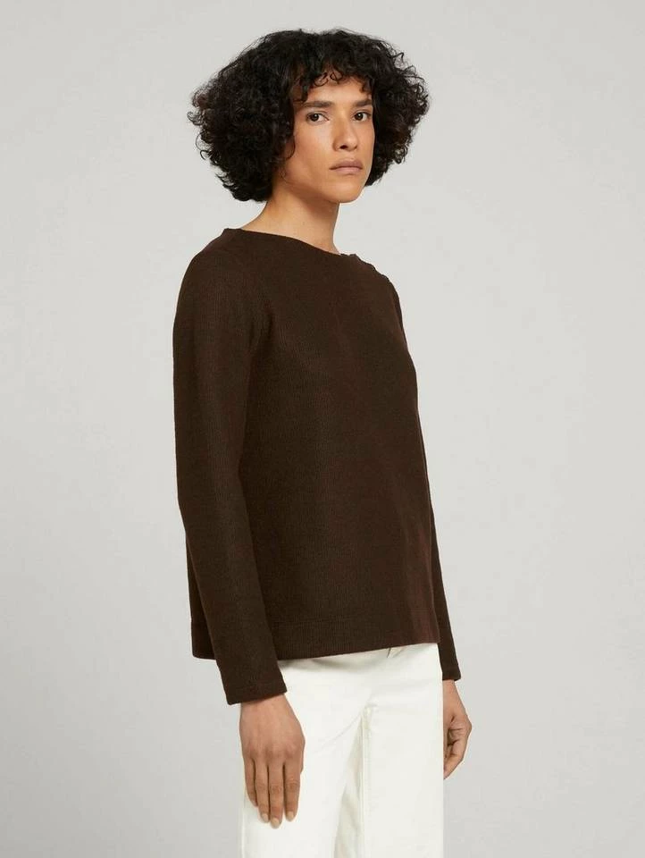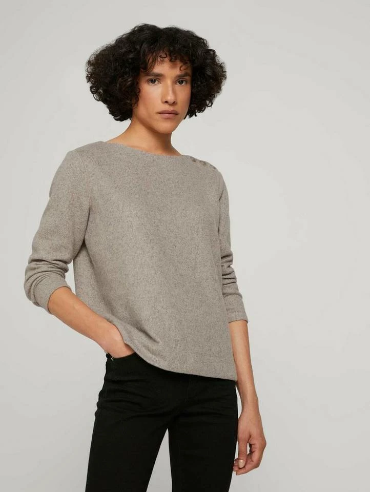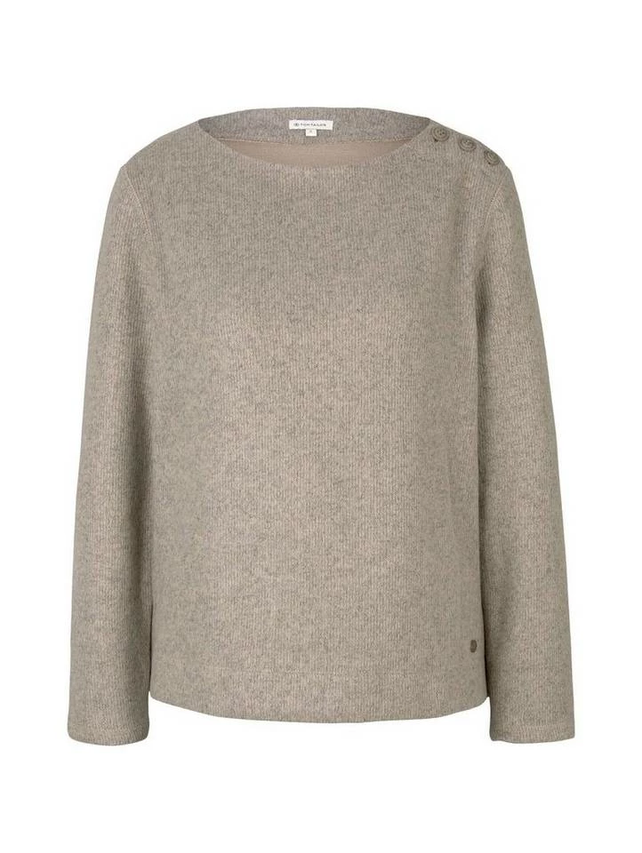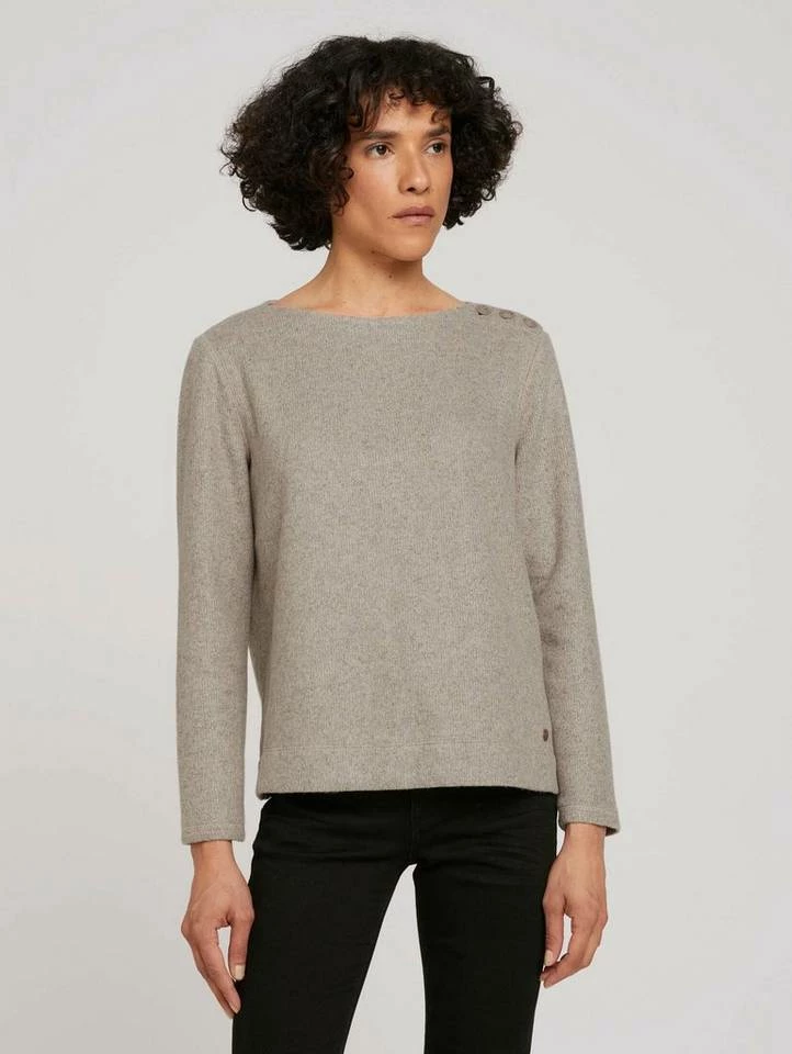Ripp Sweatshirt mit Knopfleiste für Frauen (langärmlig mit Rundhalsausschnitt) aus pflegeleichtem und weichen Feinstrick, feiner Ripp, kurze Seitenschlitze, mit Knopfleiste an der Schulter