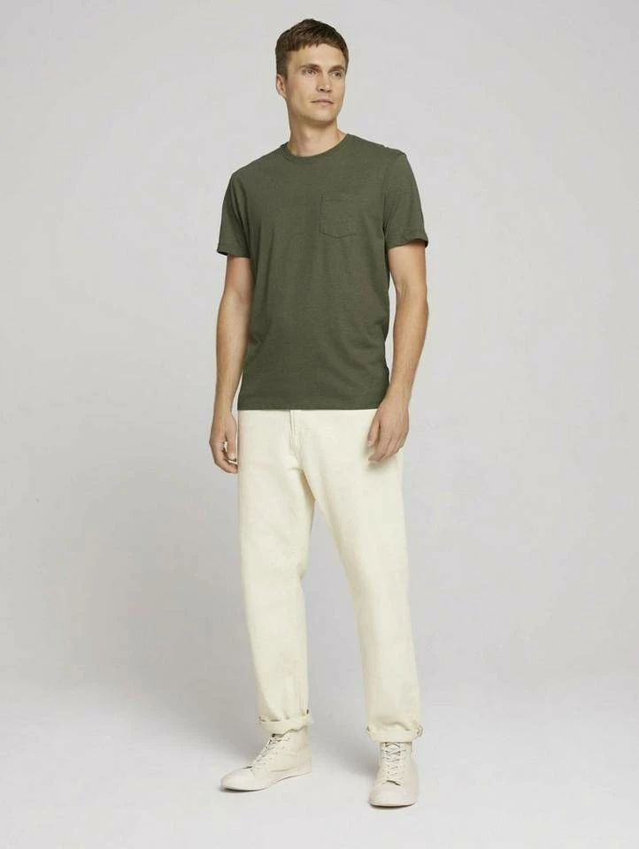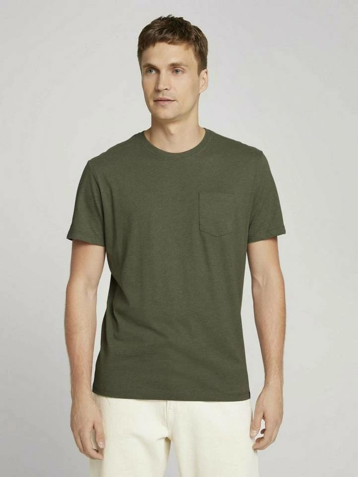 T-Shirt mit Bio-Baumwolle für Männer (kurzärnlig mit Rundhalsausschnitt) mit Bio-Baumwolle aus nachhaltigem Anbau, in Melange-Optik, mit aufgesetzter Brusttasche
