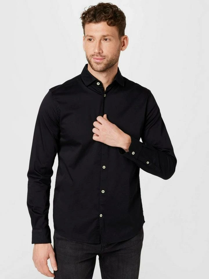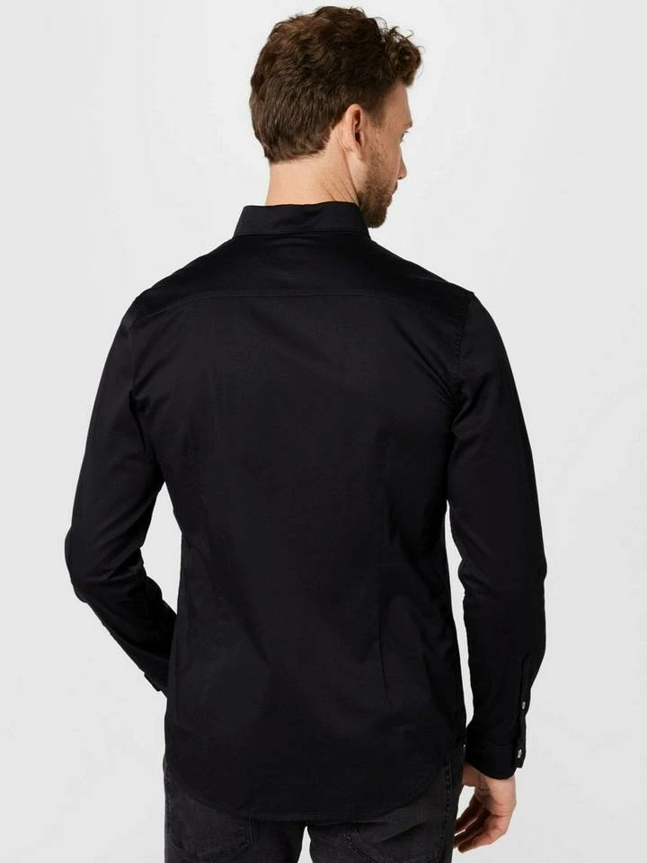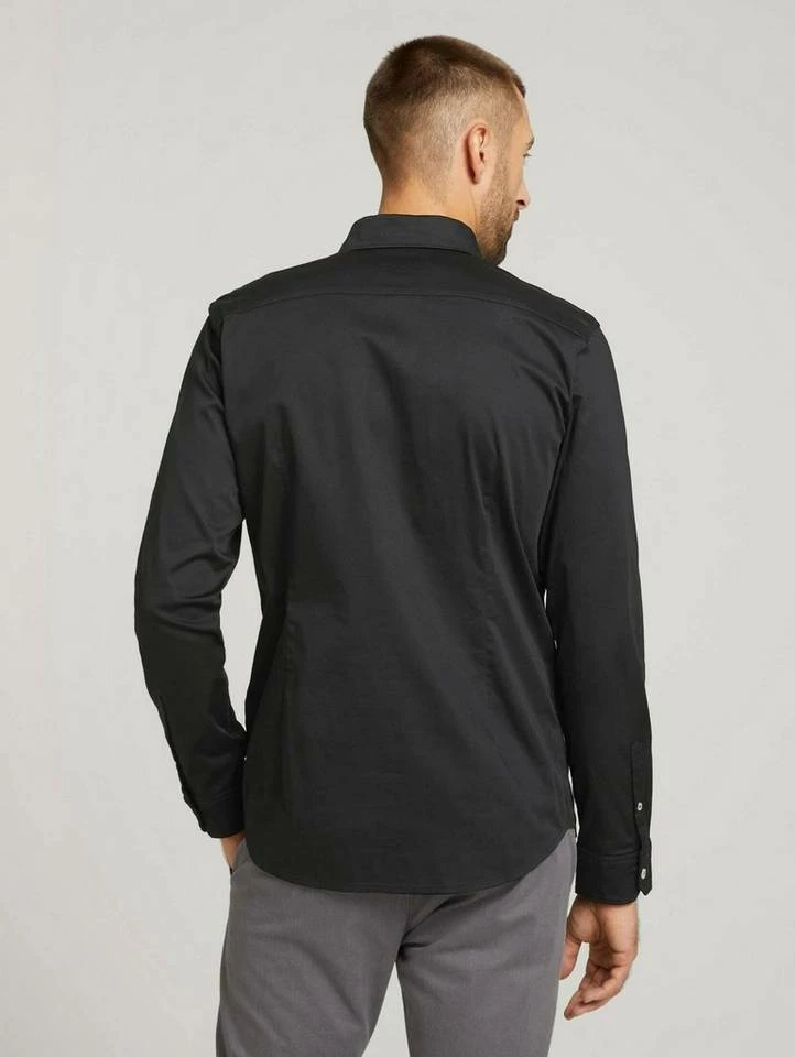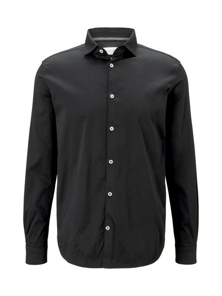 Slim Fit Hemd für Männer (langärmlig mit Haifischkragen und Knopfleiste) aus atmungsaktiver und dehnbarer Baumwolle, unifarben