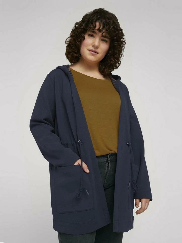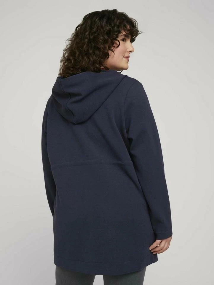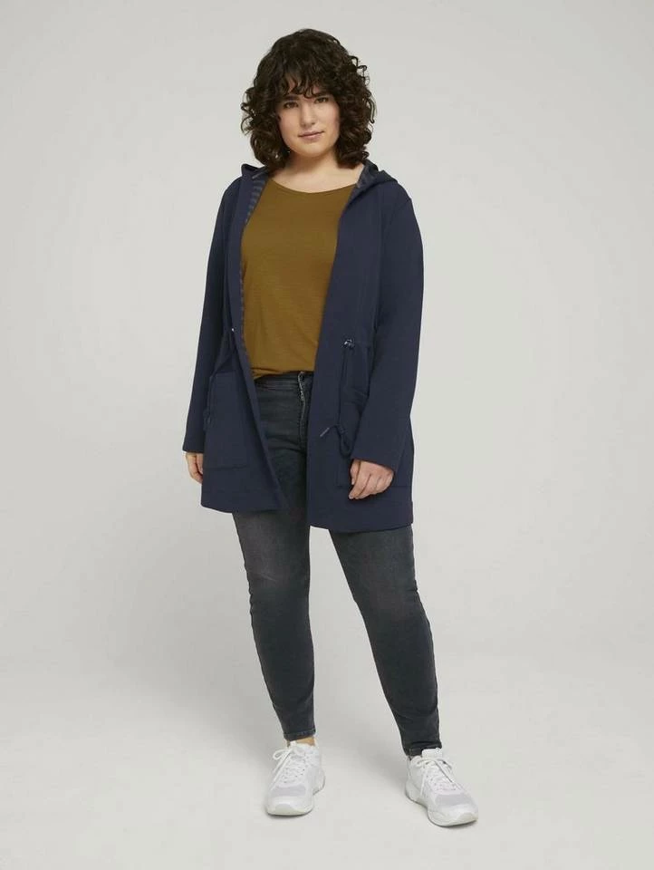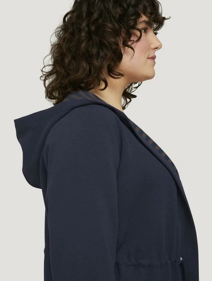 Plus – Sweatjacke mit Tunnelzug und Kapuze für Frauen (langärmlig mit Kapuze und nach vorne offen) aus dickem Jersey, mit verstellbarem Kordelzug an der Taille, aufgesetzte Taschen auf der Frontseite, gestreifte Innenseite