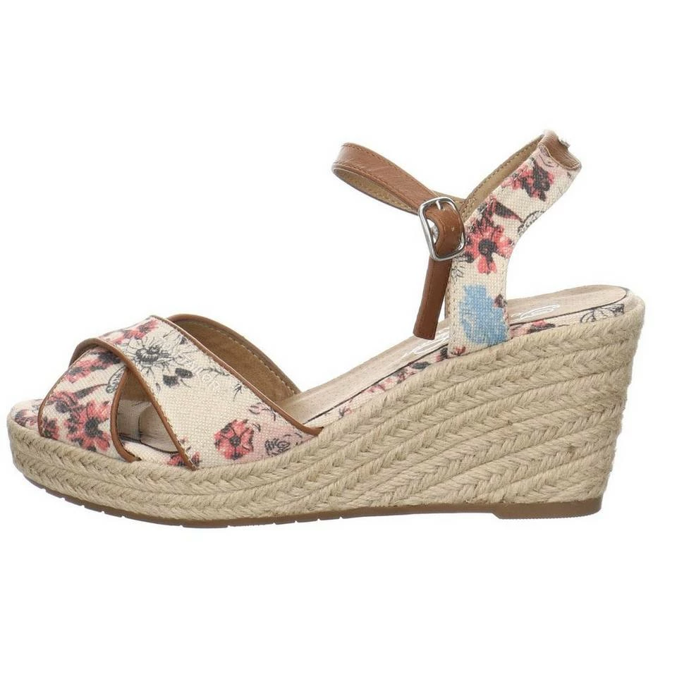 Die Keilsandaletten von Tom Tailor ziehen mit ihrem attraktiven Blütenmuster alle Blicke auf sich. Die Keilsohle in Hanfoptik runden das Design wunderbar ab und verleiht der Sandalette ihren sommerlichen Look. Ein schöner Begleiter für sonnige Tage.