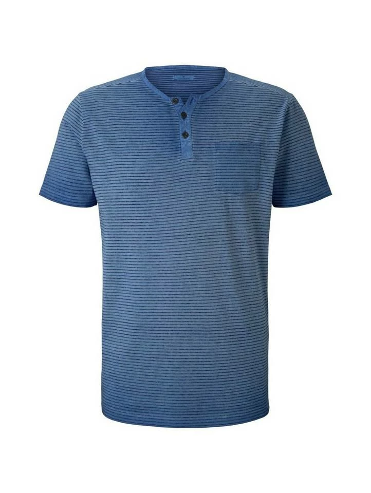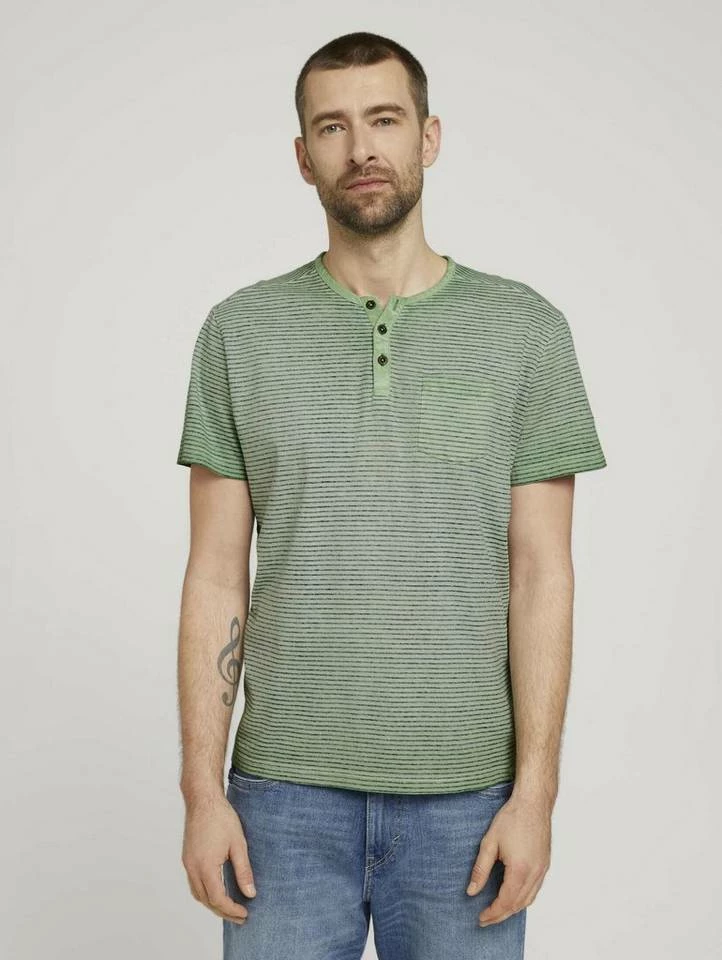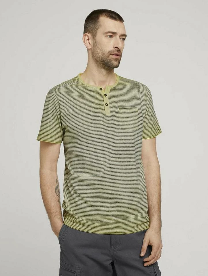 Gestreiftes Henley T-Shirt für Männer (kurzärmlig mit Henleyausschnitt und kurzer Knopfleiste) aus dehnbarem und weichen Baumwolljersey, gestreift, mit Brusttasche