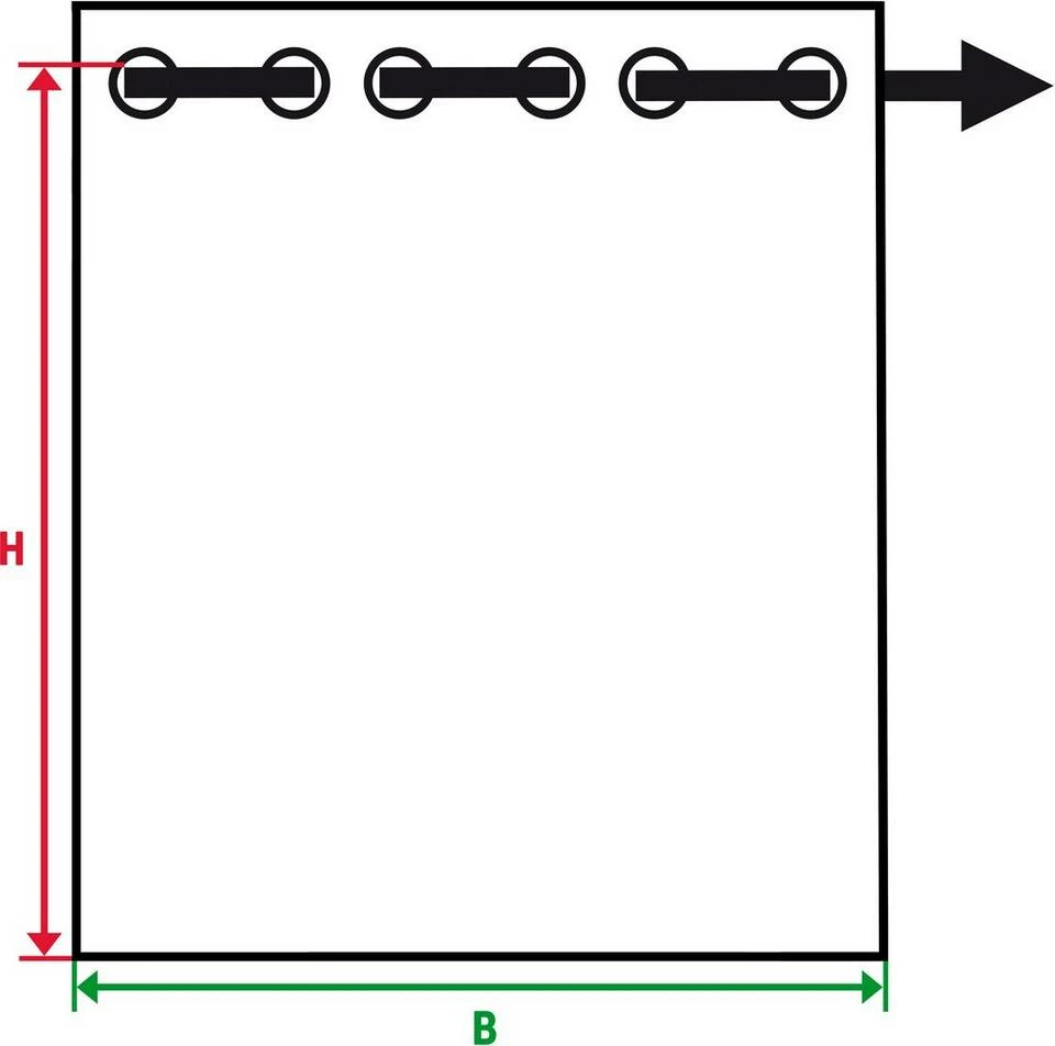 | Hinweis Aufhängung | Aufhängung erfolgt mittels Ösen (Durchmesser ca. 35 mm) an der Gardinenstange. |