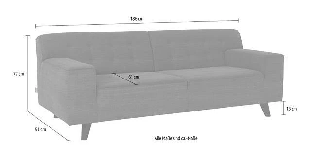 - Maße (B/T/H): 186/91/77 cm