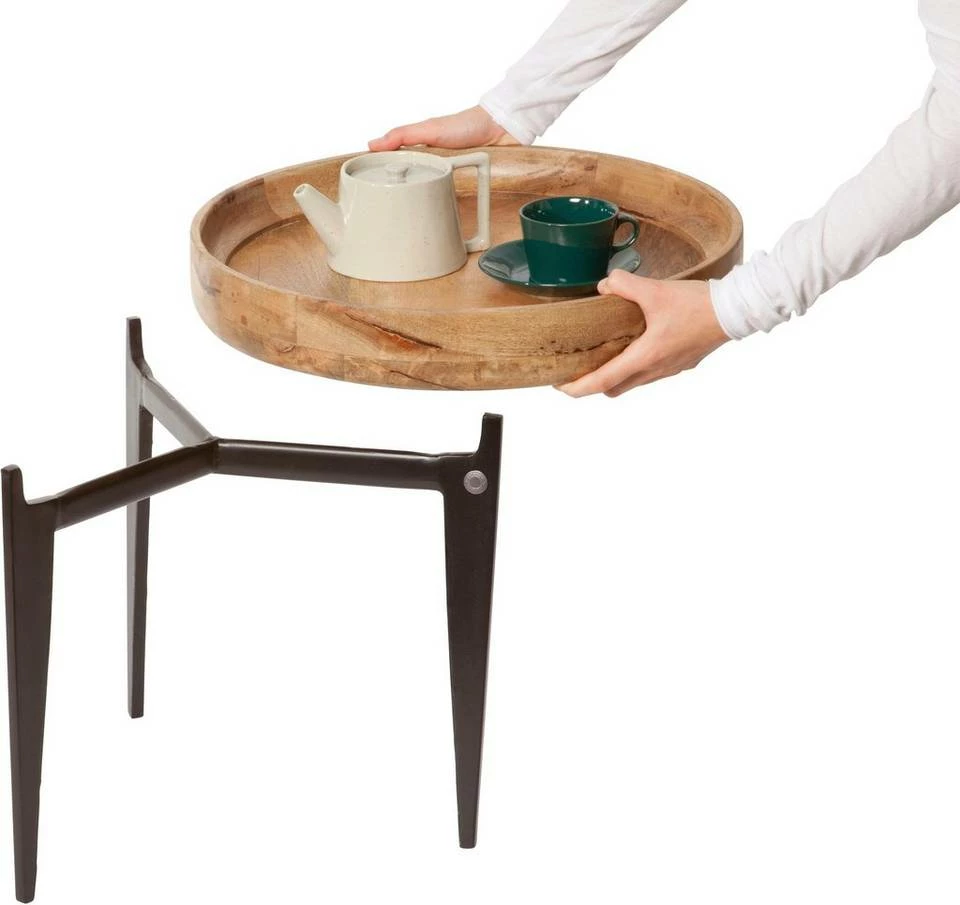 Der hohe Beistelltisch »T-TRAY TABLE HIGH« mit abnehmbarem Tablett von TOM TAILOR überzeugt durch seine vielseitigen Einsatzmöglichkeiten. Die formschöne Tischplatte ist herausnehmbar und lässt sich kurzerhand zu einem Tablett umfunktionieren. Auf diese Weise können Getränke oder Speisen in der Küche vorbereitet und anschließend komfortabel auf dem Stahlgestell im Wohnzimmer abstellt werden. Das Serviertablett des Beistellmöbels besticht mit der Fertigung aus FSC®-zertifiziertem Mangoholz und der gut sichtbaren Maserung. Darüber hinaus zeichnet sich der Tisch durch eine hochwertige Verarbeitung aus. Dank des ausgefallenen Designs harmoniert das Kleinmöbel mit verschiedenen Einrichtungsstilen. Überzeugt durch seine Vielseitigkeit: der hohe Beistelltisch »T-TRAY TABLE HIGH« mit integriertem Tablett aus dem Hause TOM TAILOR.