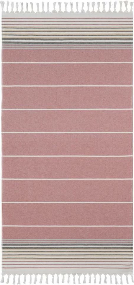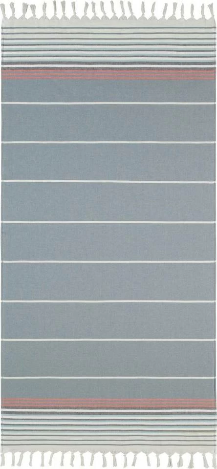 Ein toller Begleiter für den Ausflug an den Strand ist das schöne Hamamtuch "HAMAM-STREIFEN" von der Marke TOM TAILOR. Das Hamamtuch in schönen Pastellfarben ist ein toller Blickfang am Strand, im Schwimmbad oder in der Sauna. Die Fransen runden das Design optisch ab. Es ist aus 100% Baumwolle hergestellt und mit einer Frottierrückseite ausgestattet, welche Feuchtigkeit optimal aufnimmt. Aufgrund des geringen Volumens ist das Tuch ideal für den Koffer oder die Tasche. Dank des pflegeleichten Materials ist auch die Reinigung das Hamamtuches problemlos möglich: Es ist bei bis zu 60°C maschinenwaschbar und auch trocknergeeignet. Sauna, Schwimmbad oder Wellness – das weiche Hamamtuch "HAMAM-STREIFEN" von TOM TAILOR ist die richtige Wahl.