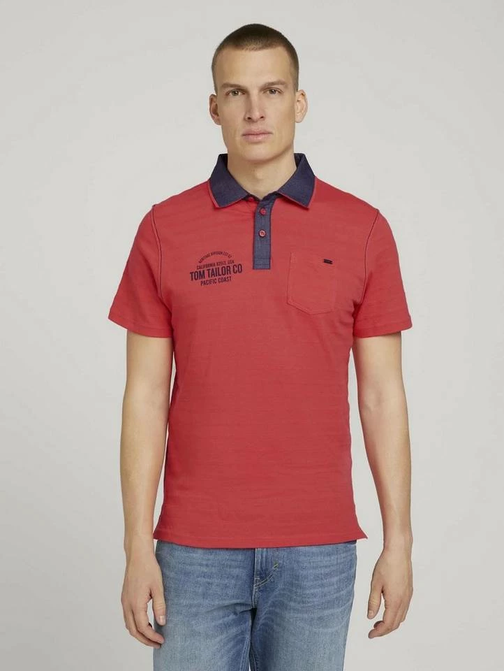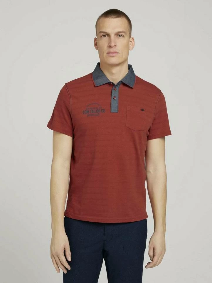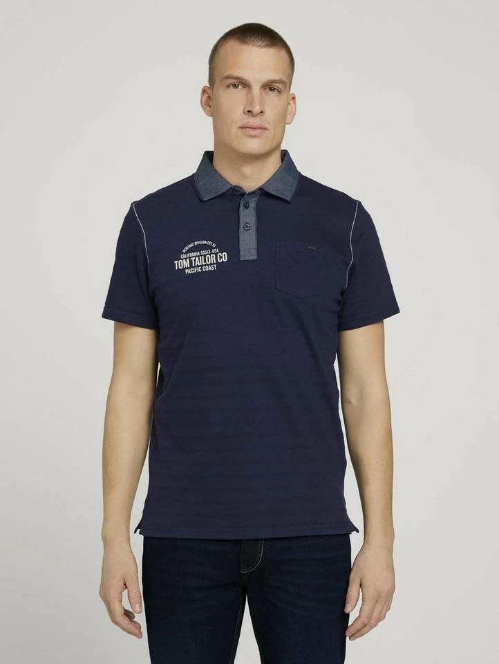 gestreiftes Poloshirt für Männer (kurzärmlig mit Polokragen und halber Knopfleiste) aus dickem und dehnbaren Jersey, mit kurzen Seitenschlitzen, gestreift, mit aufgesetzter Brusttasche, mit kleinem Print auf der Brust
