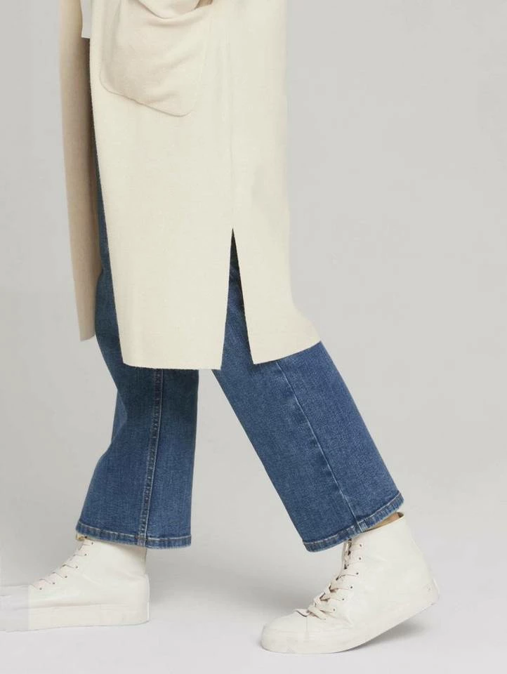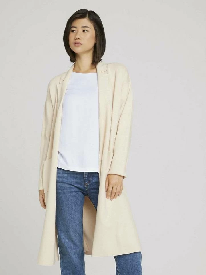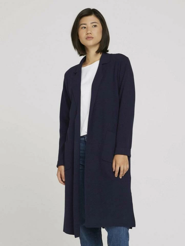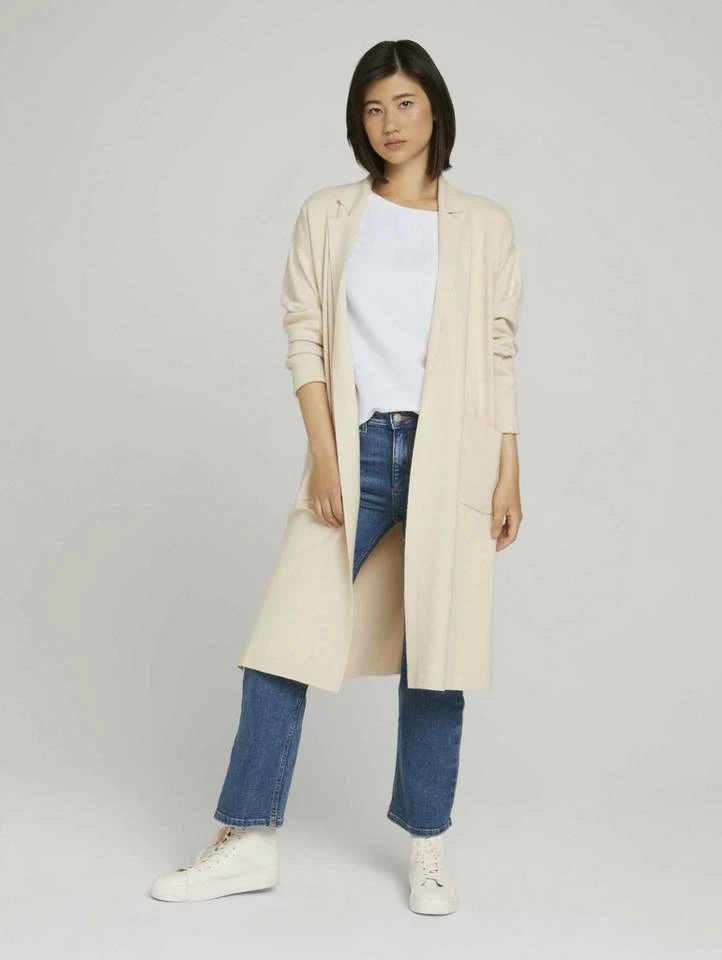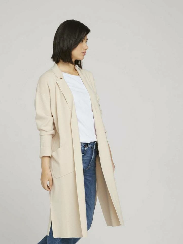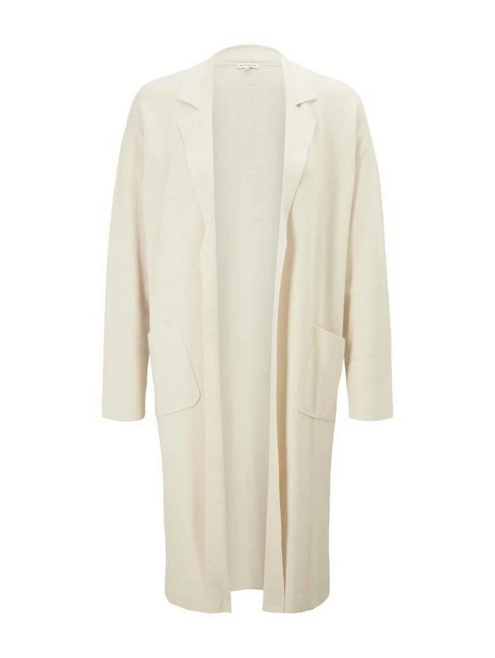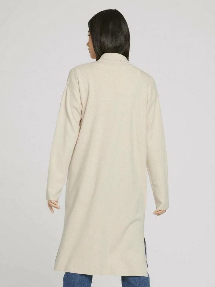 Langer Strickmantel für Frauen (langärmlig mit Reverskragen und nach vorne offen) aus Strick, Eingrifftaschen auf der Front, mit Seitenschlitzen