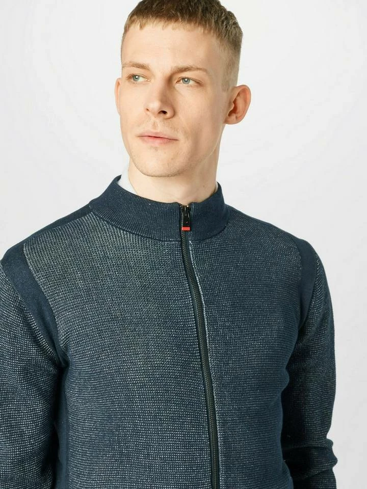Strickjacke mit Stehkragen für Männer (mit Reißverschluss und Stehkragen) aus weicher und atmungsaktiver Baumwolle, enthält nachhaltige Baumwolle, strukturiert, mit seitlichen Eingrifftaschen