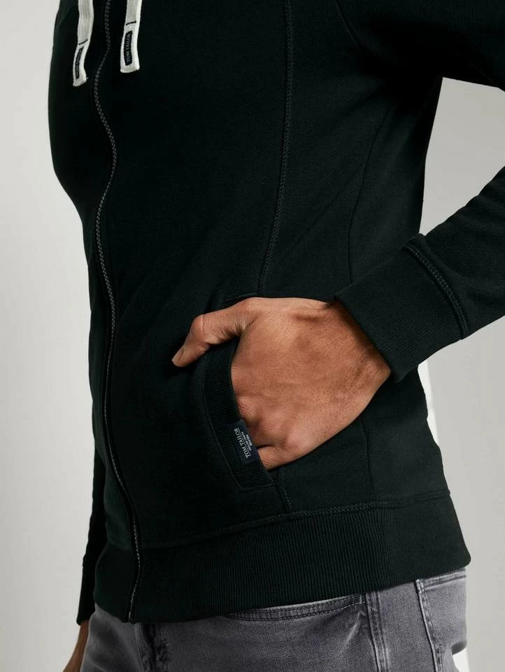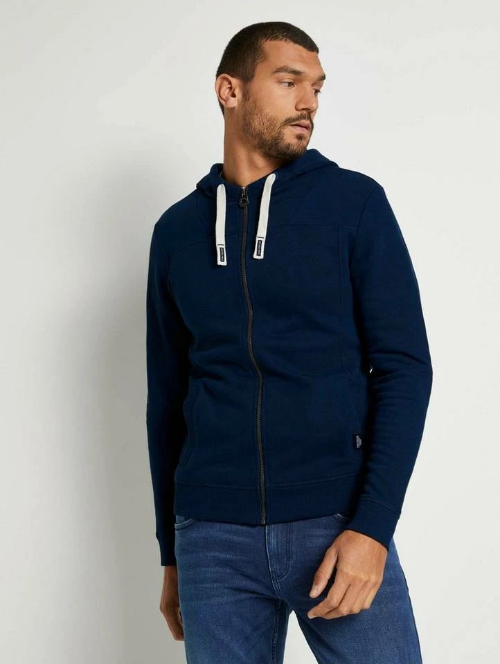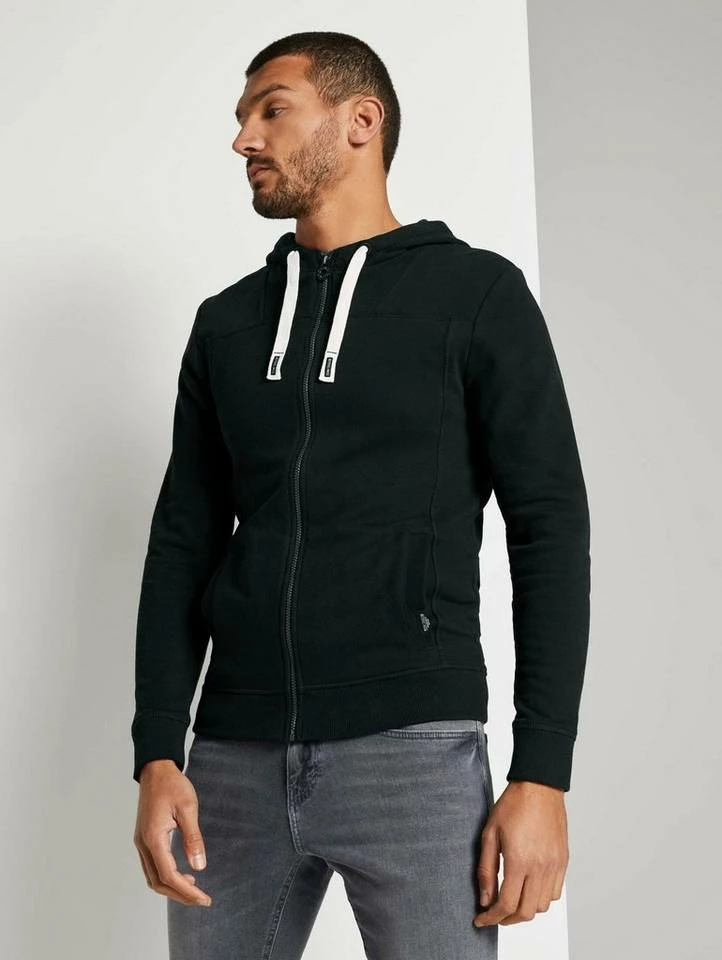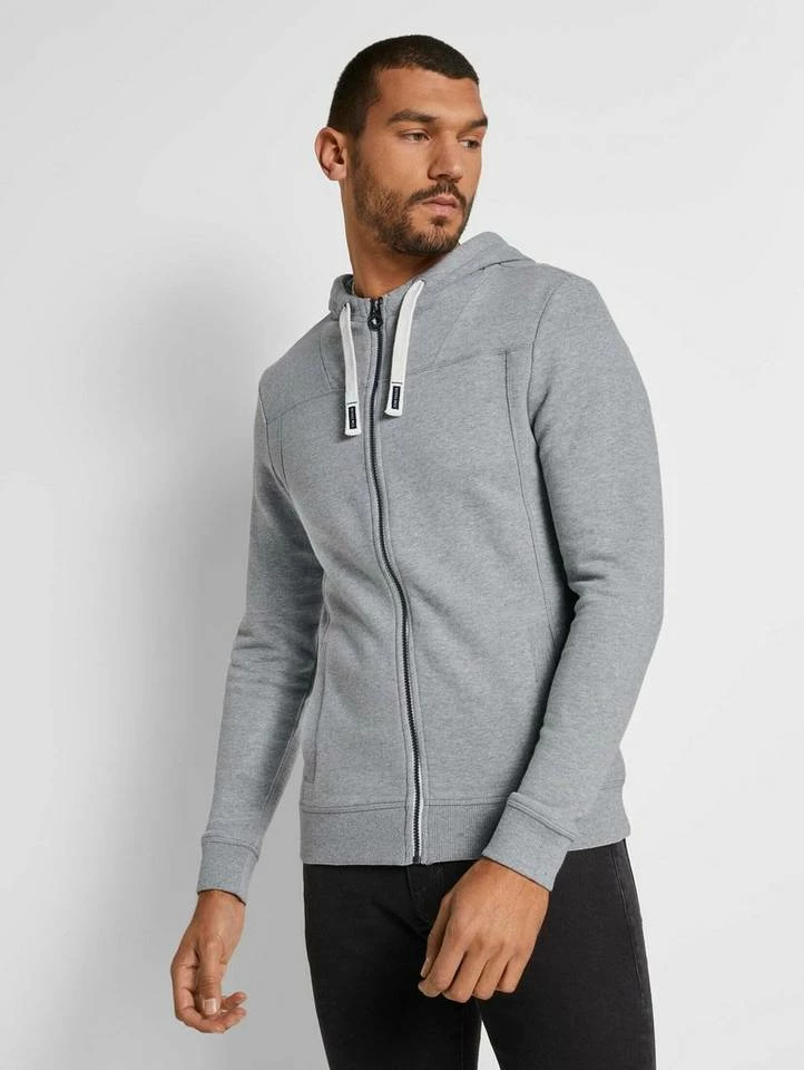 Sweatjacke mit Kapuze für Männer (langärmlig mit Kapuze und Reißverschluss) aus weichem und elastischen Sweat, mit Rippbündchen an den Saumkanten, Eingrifftaschen auf der Front, mit Teilungsnähten