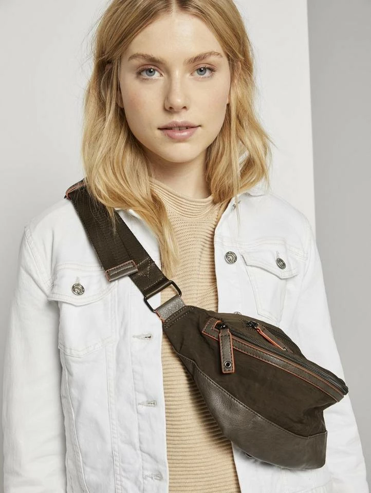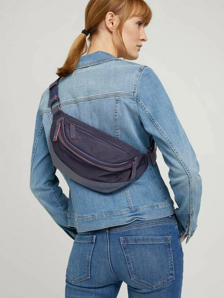 Karianne Gürteltasche für Frauen (mit Metall-Reißverschluss zum Schließen) aus Kunstleder-Nylon-Mix, 1 Reißverschlussmünzfach, 12 Kartensteckfächer, 2 Scheinfächer, 3 offene Fächer, mit glänzendem Reißverschluss im Color-Blocking