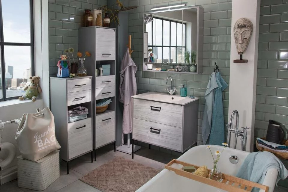Freuen Sie sich auf ein neues Badezimmerschrank aus deutscher Produktion, welches Ihnen sehr viel Freude bereiten wird. FINN ist ein Modell des Herstellers Tom Tailor, dessen Name jedem ein Begriff sein sollte. Auch im Bereich der Möbelwelt kommt der Hersteller mit großen Schritten an die Front und nimmt in kurzer Zeit seinen Platz in dieser Branche sehr erfolgreich ein. Nicht nur stylisch sondern auch qualitativ ein echtes Highlight. Eine hochwertige Verarbeitung wird Sie lange Jahre begleiten.