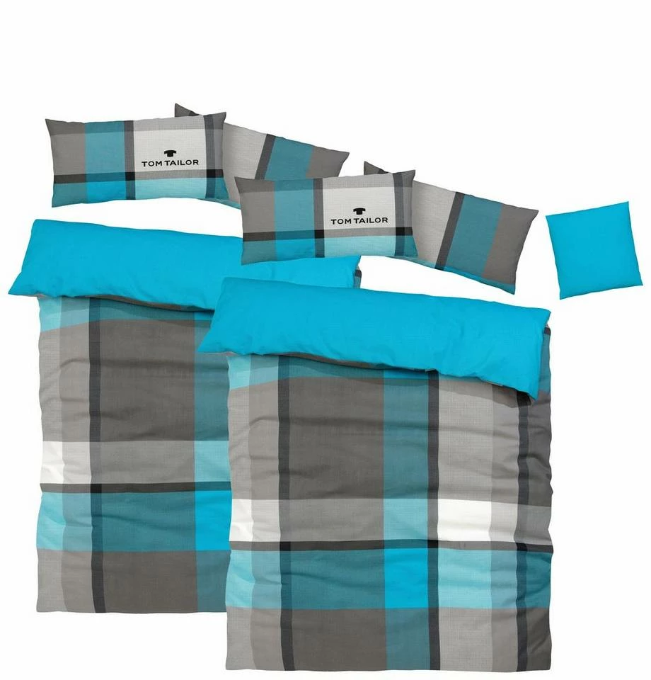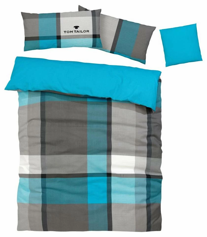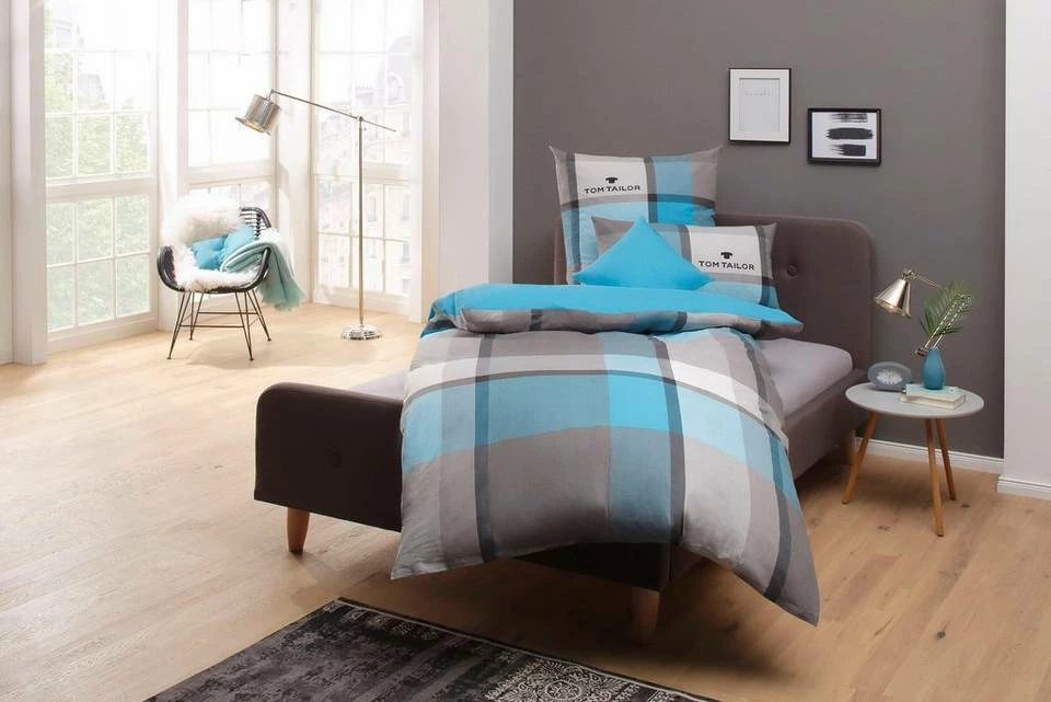 Frische Akzente im Schlafbereich setzt die moderne Bettwäsche »Lenny« von TOM TAILOR. Sie präsentiert sich im angesagten Karodesign und ist in trendigen Farben gestaltet. Ein Markenschriftzug auf dem Kopfkissenbezug komplettiert die Optik. Die Bettgarnitur überzeugt mit einer weichen und glatten Qualität für ein angenehmes Schlafgefühl. Ausgestattet mit einem Reißverschluss, lässt sie sich im Handumdrehen ab- und beziehen. Die Bezüge punkten mit einer pflegeleichten Handhabung und sind bei bis 60 °C maschinenwaschbar sowie auch trocknergeeignet. Sorgt für Gemütlichkeit im Schlafzimmer: die moderne Bettwäsche »Lenny« von TOM TAILOR.