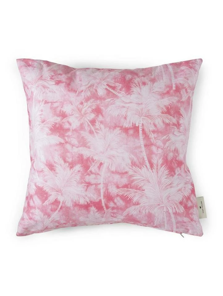 Kissenhülle mit Palmenprint für unisex (mit Reißverschluss zum Schließen) mit beidseitigem Palmenprint, mit Logo-Flag an der Seitennaht