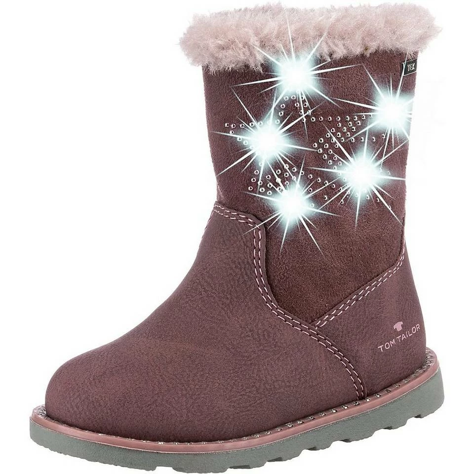 – trendiger Blinkeffekt – verstärkte Fersenpartie – mit angenehm anpassungsfähigem Futter aus textilem Material Genau richtig für die kleinen Füßchen: die Winterstiefel von der Marke TOM TAILOR. Durch den Reißverschluss kann das Kind schnell und einfach in den Schuh hineinschlüpfen. Der praktische Materialmix aus Synthetik und Textil unterstreicht die Aufmachung des Paares. Die Aufmerksamkeit erregenden Blinkie-Lämpchen leuchten bei Bewegung auf. Verschluss: Reißverschluss Schuhweite: E Zusatzfunktion: LED Obermaterial: Sonstiges Material Textil (Materialmix aus Synthetik und Textil) Futter: Textil (Textil) Decksohle: Textil (Textil) Laufsohle: Sonstiges Material (Gummi)