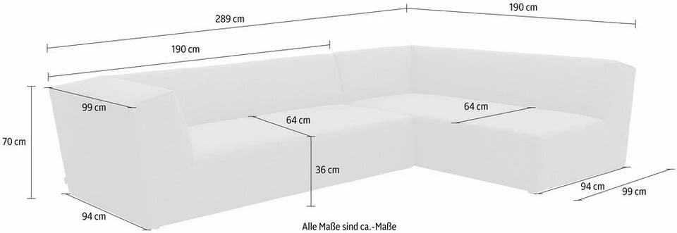 | Hinweis Lieferumfang | Inklusive Sofaverbinder Dekoration & Kissen nicht im Lieferumfang ethalten |