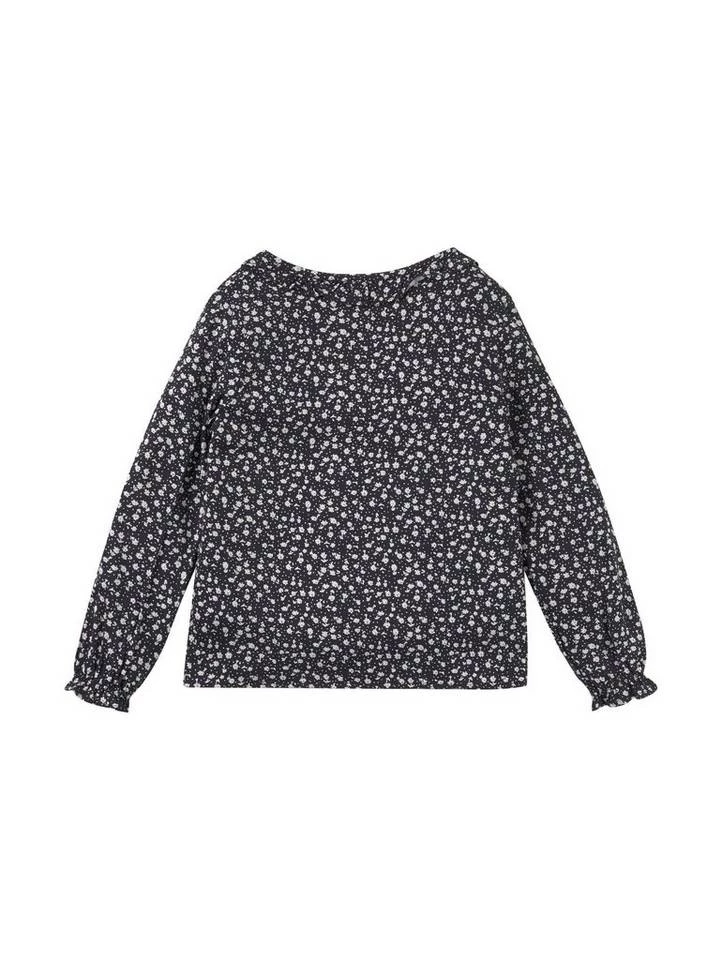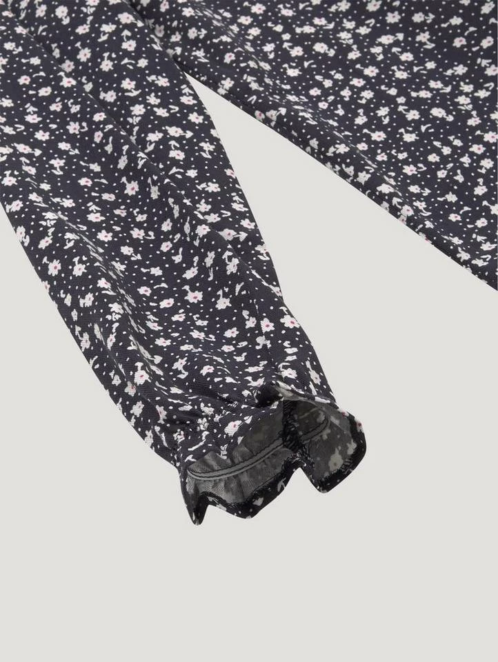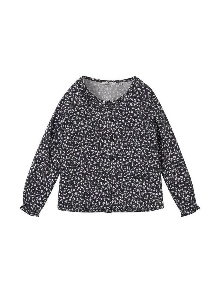 Gemusterte Bluse für Mädchen (langärmlig mit Rundhalsausschnitt und Knopfleiste zum Schließen) aus Jersey, ganzflächig gemustert, Regular Fit, Rüschen am Ärmelsaum