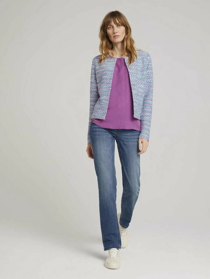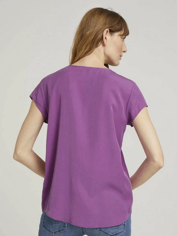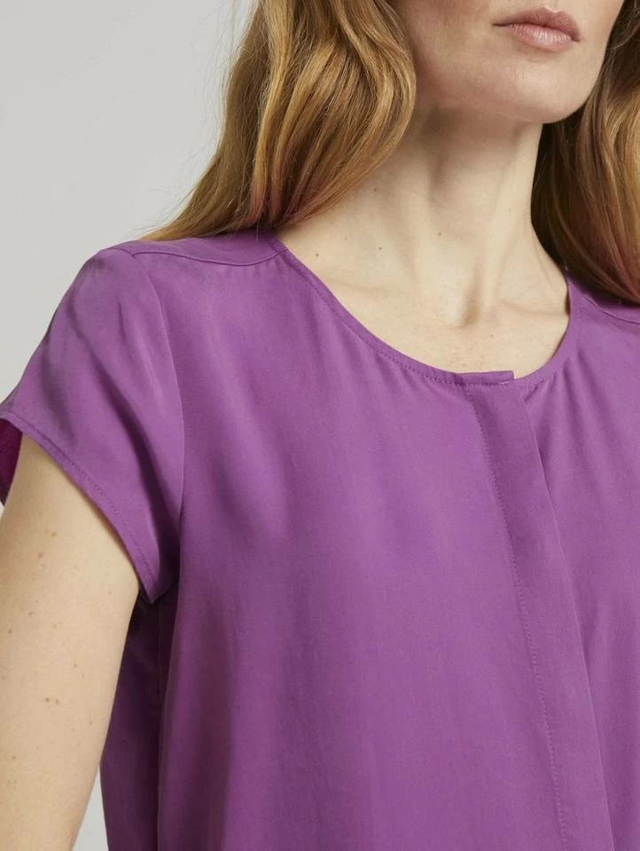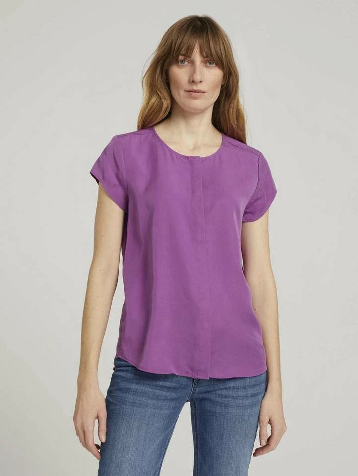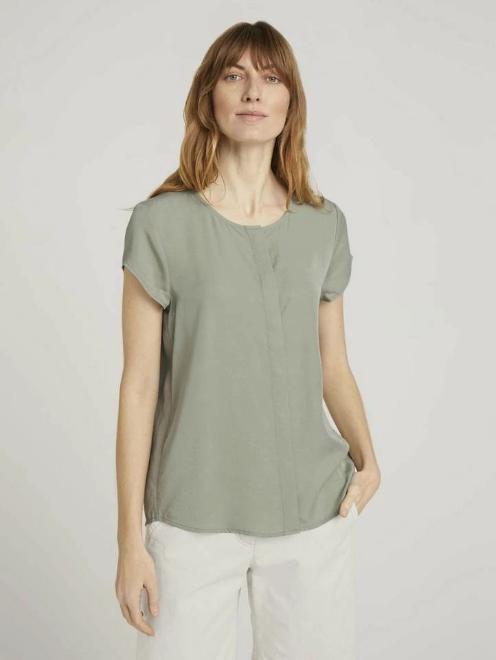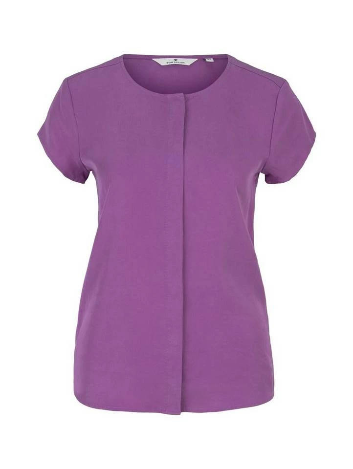 - Kurzärmlig mit Rundhalsausschnitt und verdeckter Knopfleiste