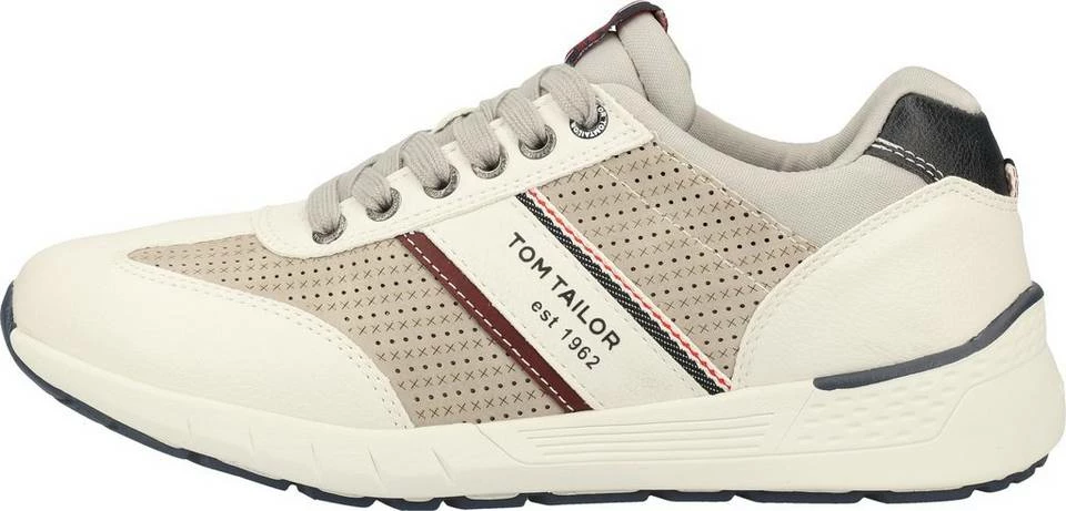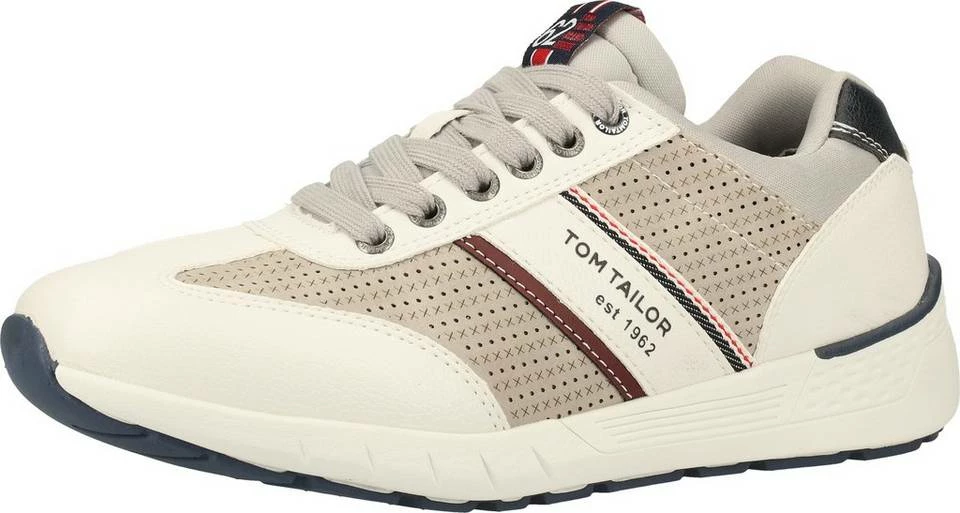 Tom Tailor präsentiert einen coolen Sneaker. Er überzeugt mit kleinen Details wie den gestanzten Ellipsen und Kreuzen und den netzartigen Stoffeinsätzen. Zudem ist das Fußbett mit dem Memory-Effect bestückt, so passt es sich perfekt an die Fußform an und ist schön komfortabel.