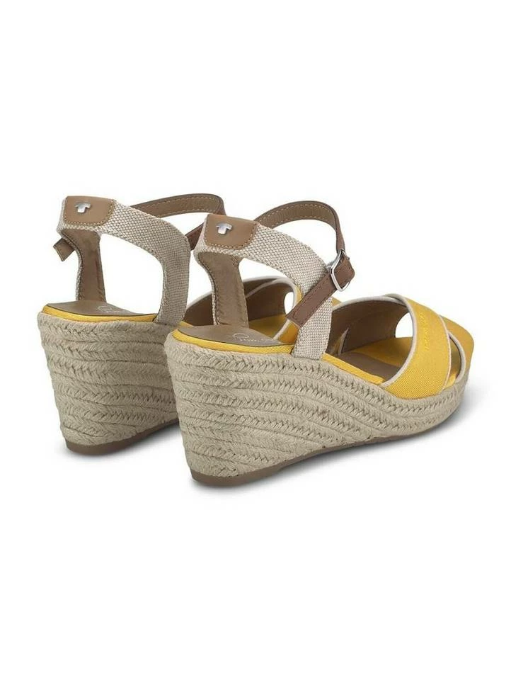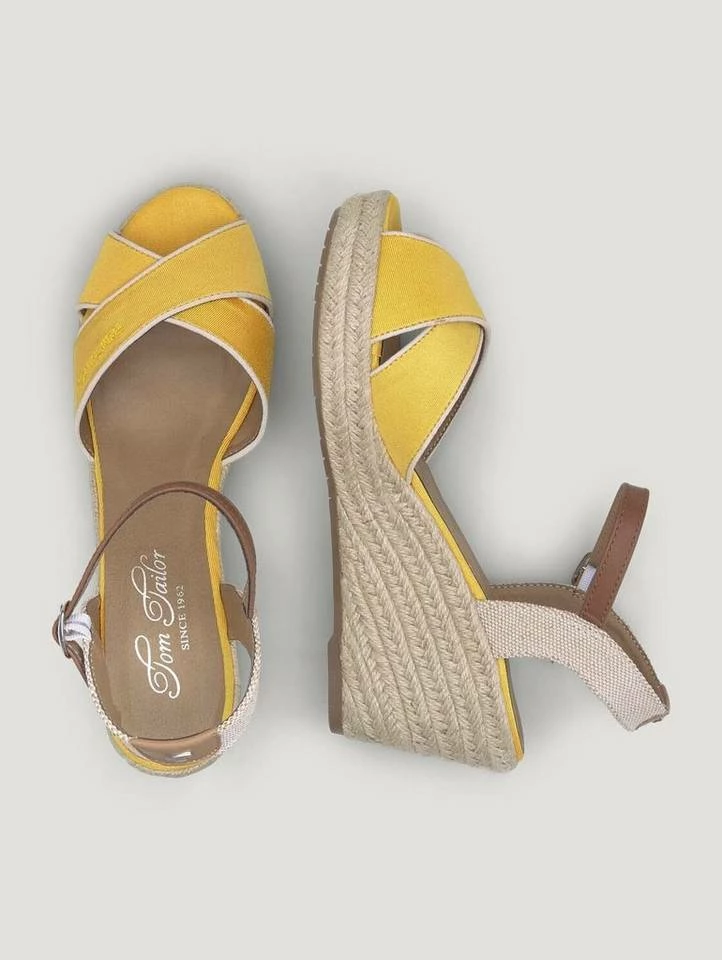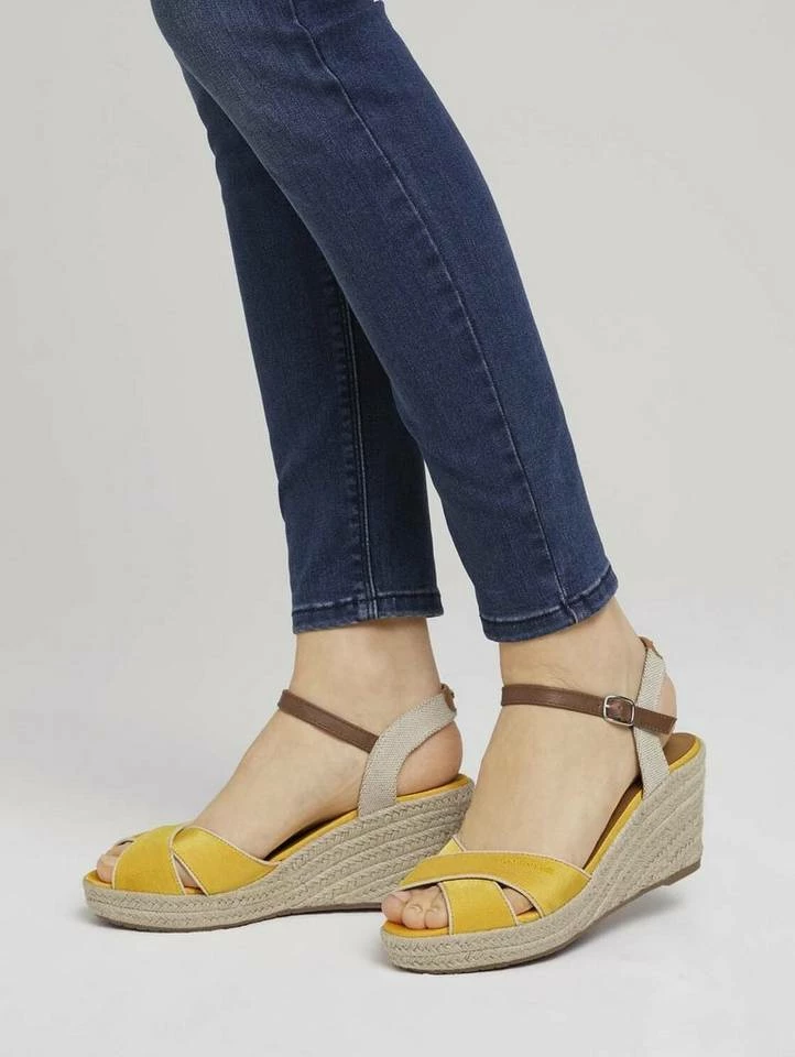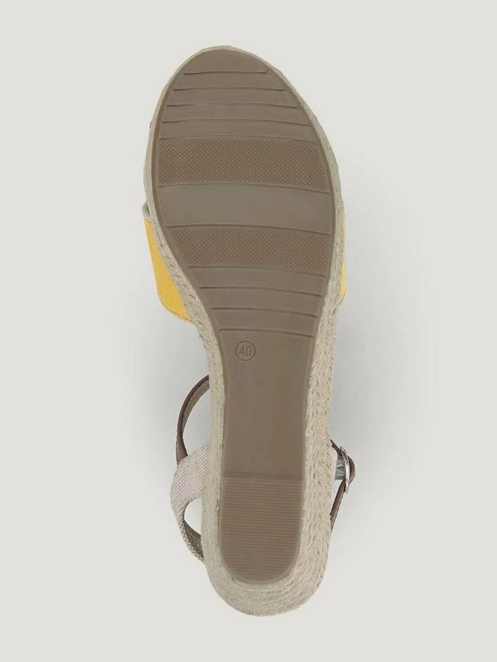 Sandaletten mit Keilabsatz für Frauen (mit Schnallenverschluss) aus pflegeleichten und weichen Fasern, Schaftweite ca. 9,5cm, Schafthöhe ca. 6,5cm, Absatzhöhe ca. 8cm, Absatztyp: Keil, mit thermoplastischer Sohle