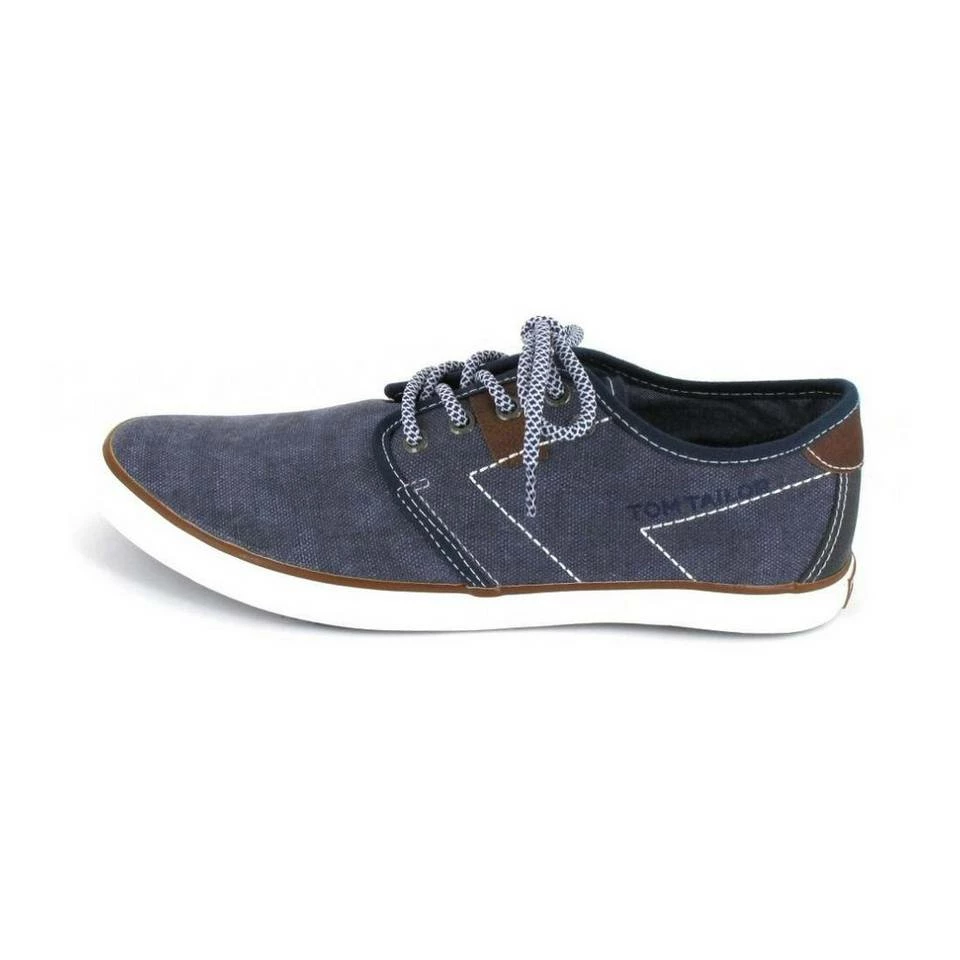 – Herren Leinenschuh in der Farbe Navy von der Marke Tom Tailor – farblich abgesetze Ferse und Schnürsenkel in elegantem Braun – beste Anpassung an den Fuß durch die Schnürung – Gummi- Laufsohle