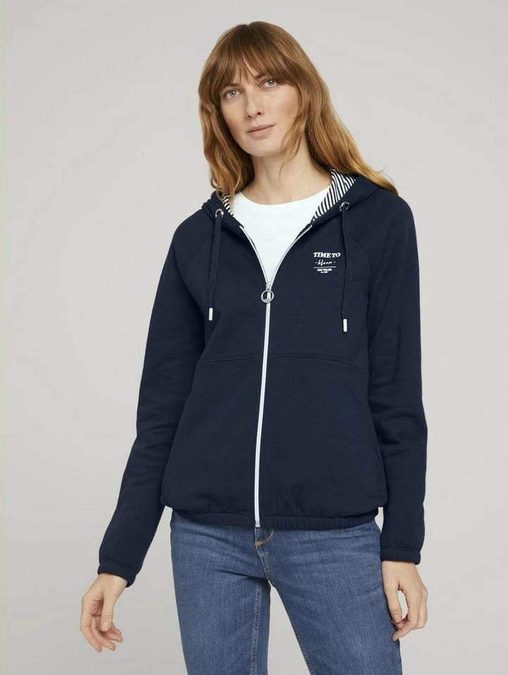 Sweatjacke mit Bio-Baumwolle für Frauen (langärmlig mit Reißverschluss) mit Bio-Baumwolle aus nachhaltigem Anbau, enthält nachhaltige Baumwolle, mit zwei seitlichen Eingrifftaschen, mit Kapuze und Kordelzug, mit elastischem Saum