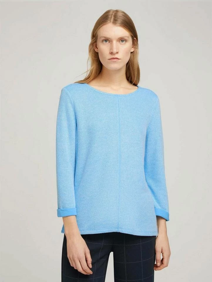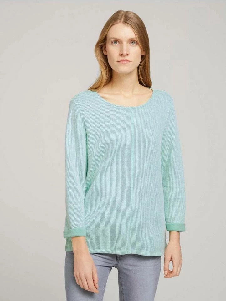 Sweatshirt mit melierter Innenseite für Frauen (3/4 Arm mit Rundhalsausschnitt) aus dickem und weichen Jersey, mit melierter Innenseite, fixierter Ärmelaufschlag, mit Seitenschlitzen