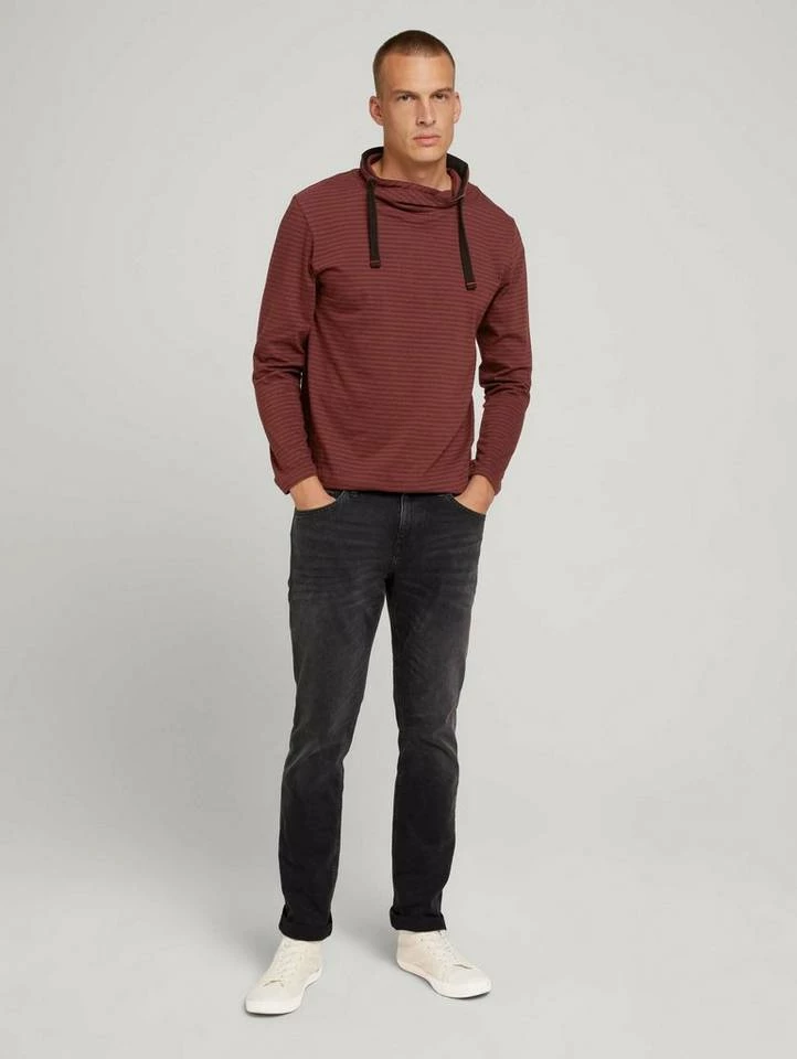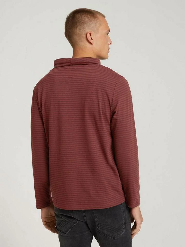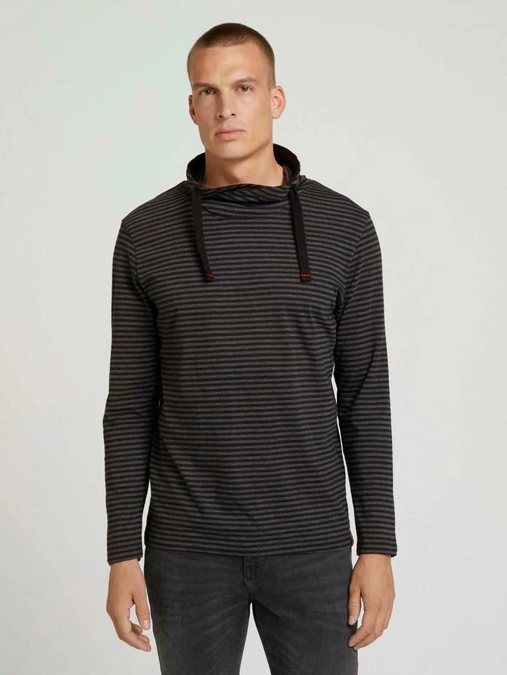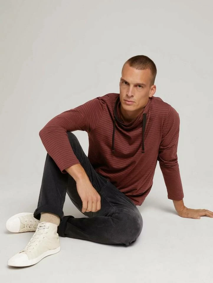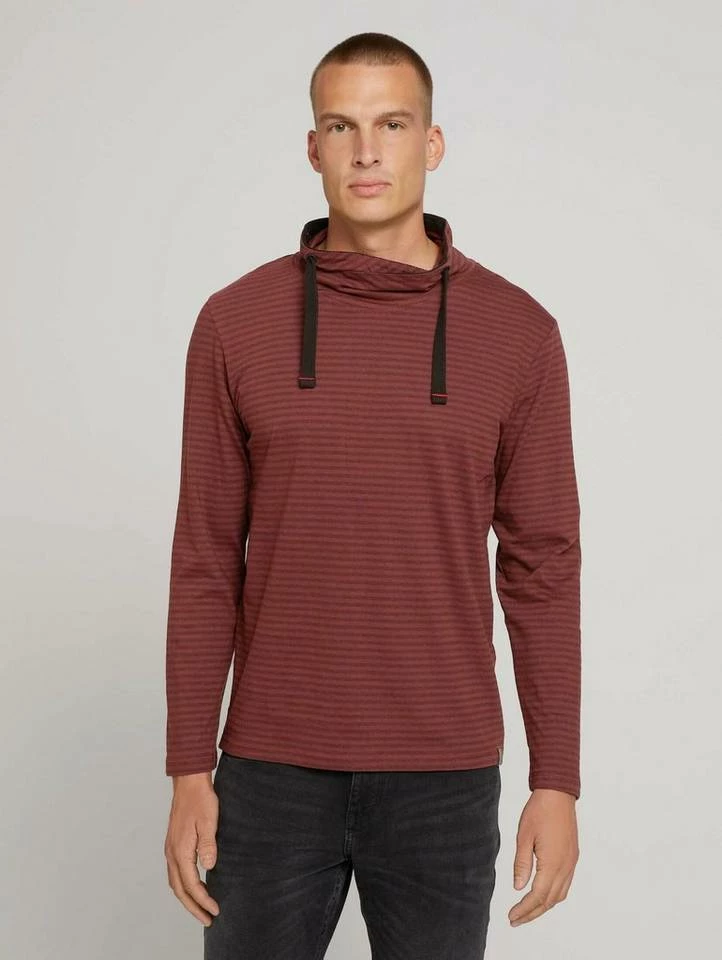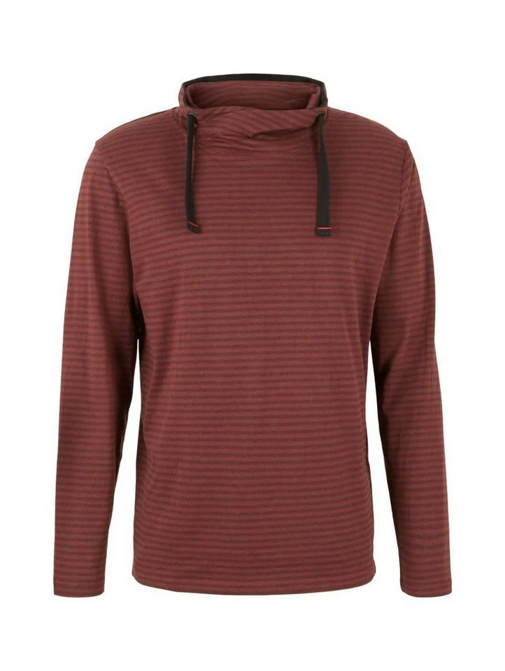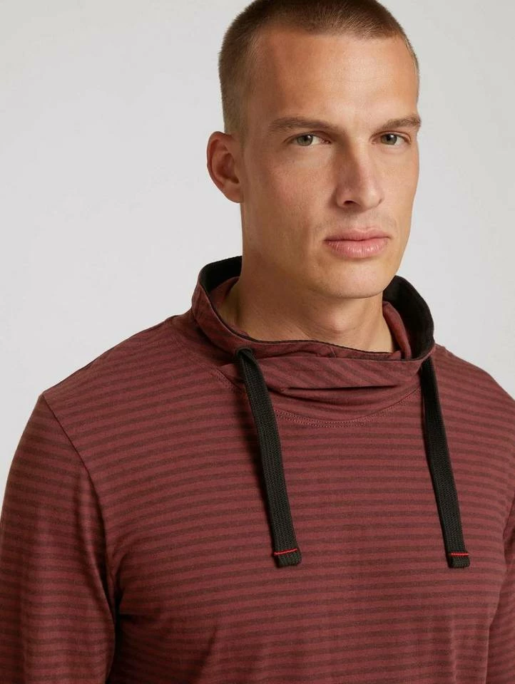 Gestreiftes Langarmshirt mit Stehkragen für Männer (langärmlig mit Stehkragen) mit weicher und nachhaltiger Baumwolle, gestreift, mit Tunnelzug durch den überkreuzten Kragen