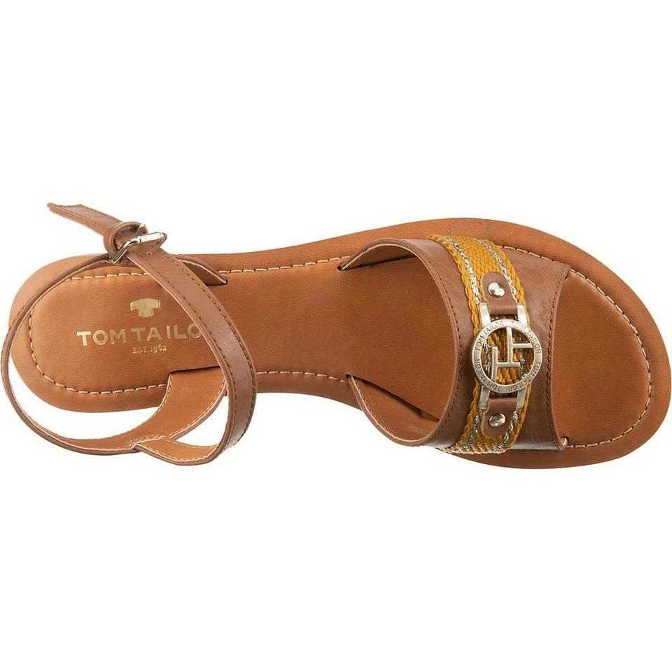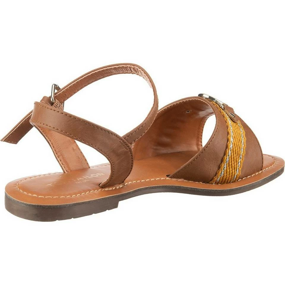 – Kunstleder-Obermaterial – elegante Riemenführung mit Label-Applikation – profilierte und leicht flexible Laufsohle Die Riemchensandalen von TOM TAILOR zeigen sich mit einer metallenen Label-Applikation auf dem Riemen und lassen sich per Dornschließe mit elastischem Einsatz, angenehm anpassen. Die Textil-Decksohle ist weich gepolstert und sorgt für Tragekomfort. Verschluss: Schnalle Absatzart: Flach Absatzhöhe ca.: 1.3 cm Schuhweite: G Obermaterial: Sonstiges Material (Materialmix aus Kunstleder und Textil) Futter: Sonstiges Material (Kunstleder) Decksohle: Sonstiges Material (Synthetik) Laufsohle: Sonstiges Material (TPR-Sohle)