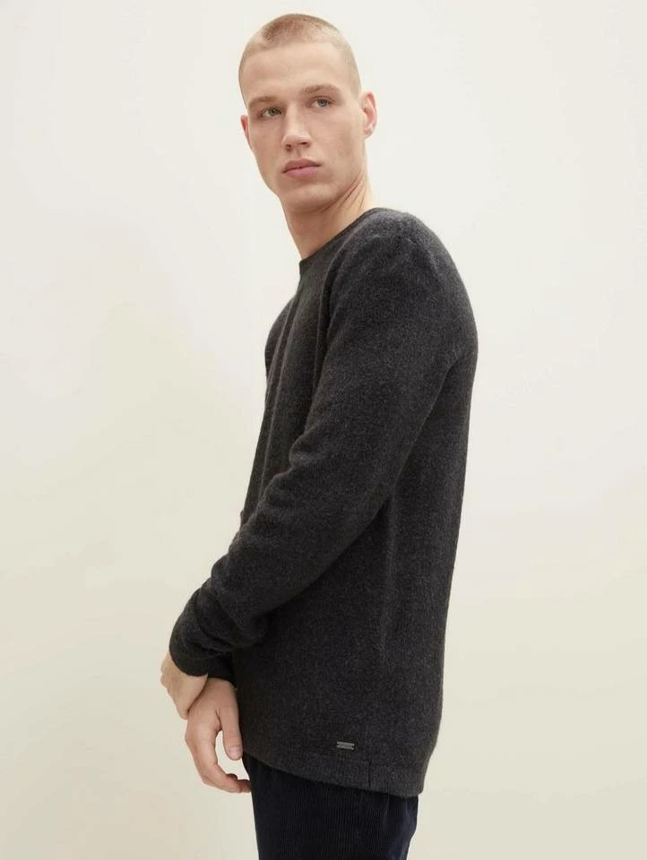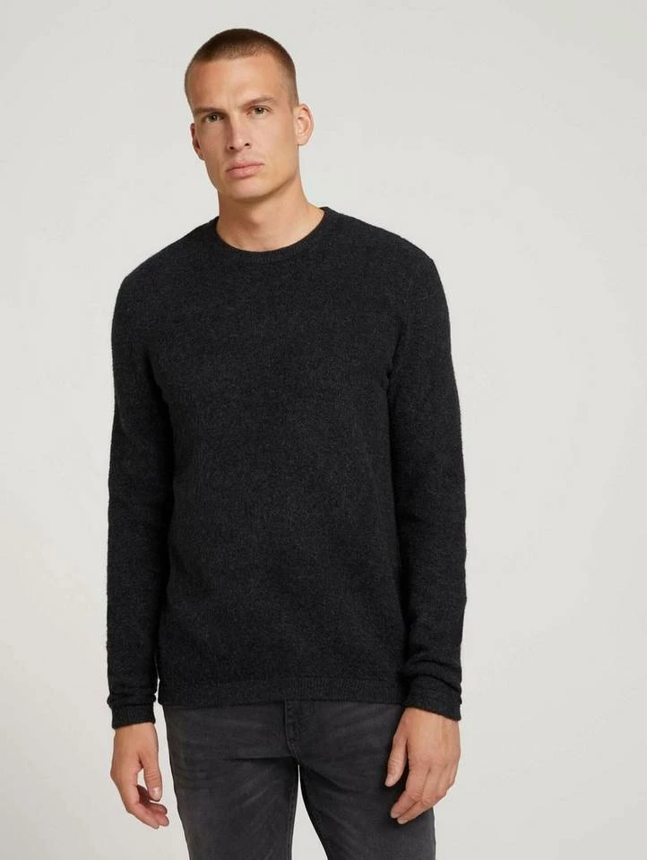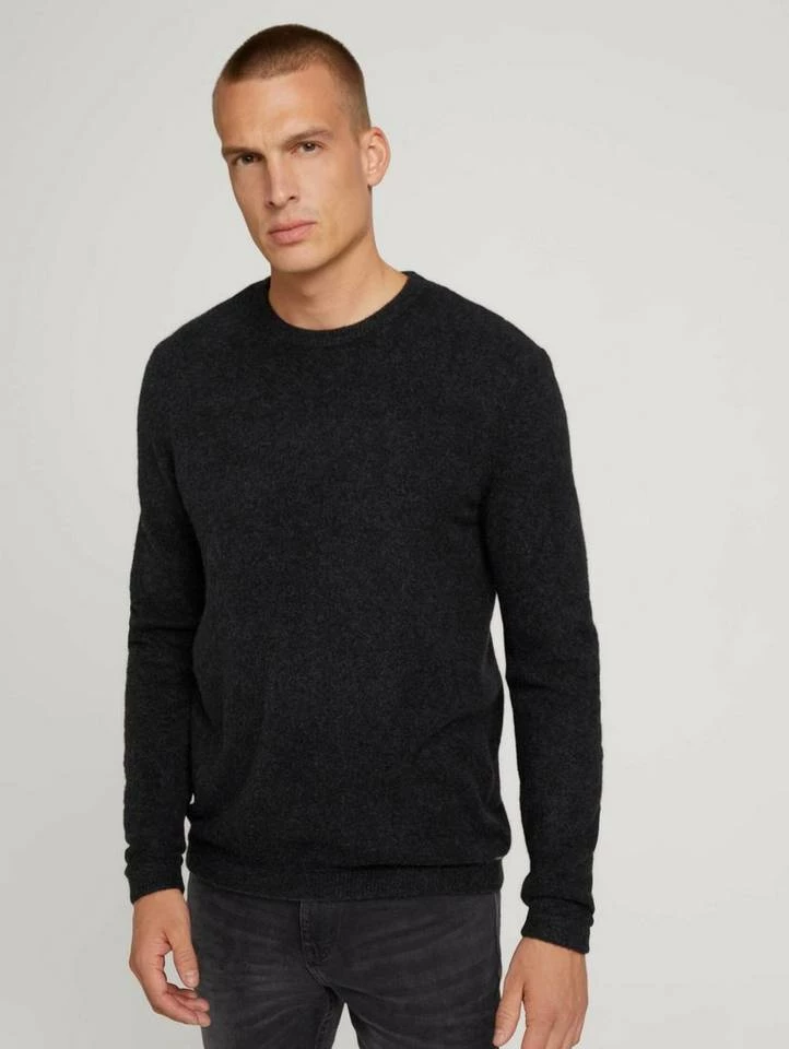 Weicher Pullover mit Merinowolle für Männer (langärmlig mit Rundhalsausschnitt) aus pflegeleichten Fasern mit weicher Merinowolle, Rippbündchen an den Saumkanten, in Melange Optik