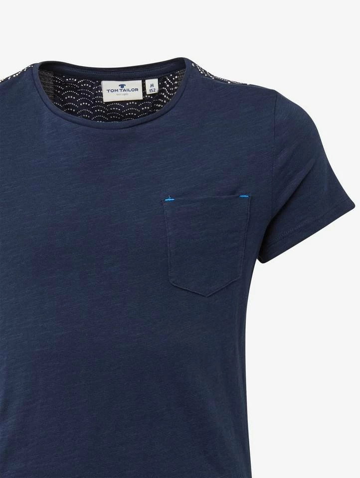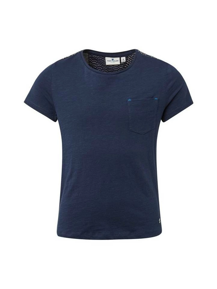 T-Shirt mit Brusttasche für Mädchen (zweifarbig, kurzärmlig mit Rundhalsausschnitt) aus reiner Baumwolle für einen angenehmen Tragekomfort, im Layering-Look am Rücken, gemustertem Rücken, mit Brusttasche und Logo-Coin