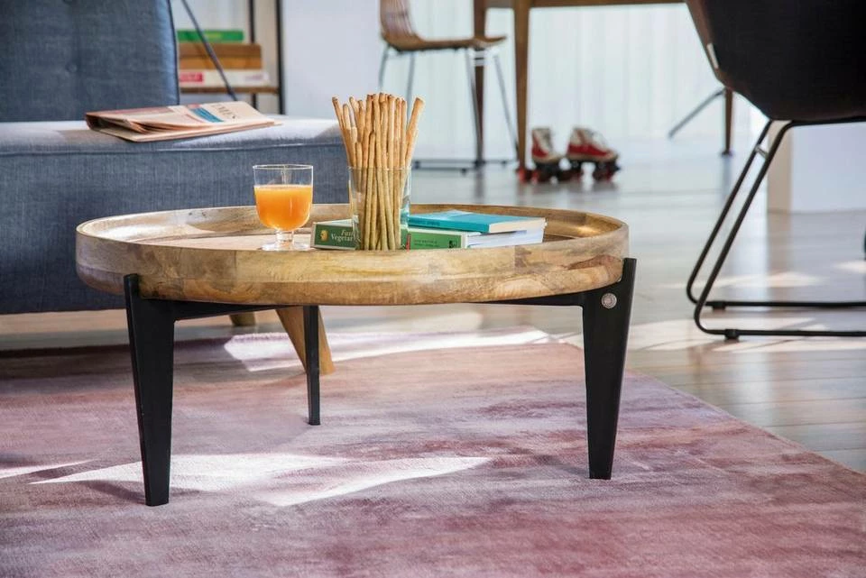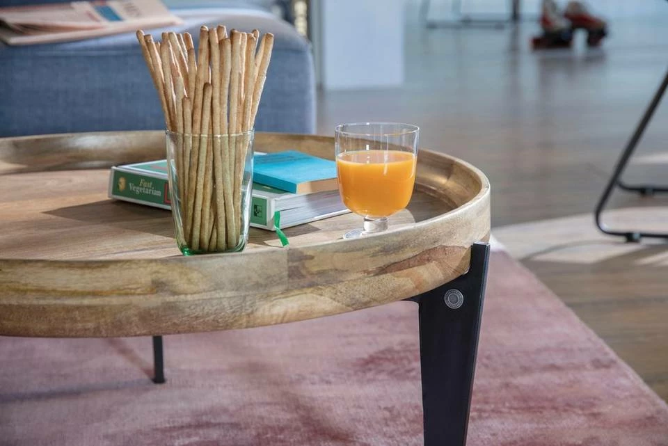 - Breiter Couchtisch mit runder Tischplatte aus FSC®-zertifiziertem Mangoholz
