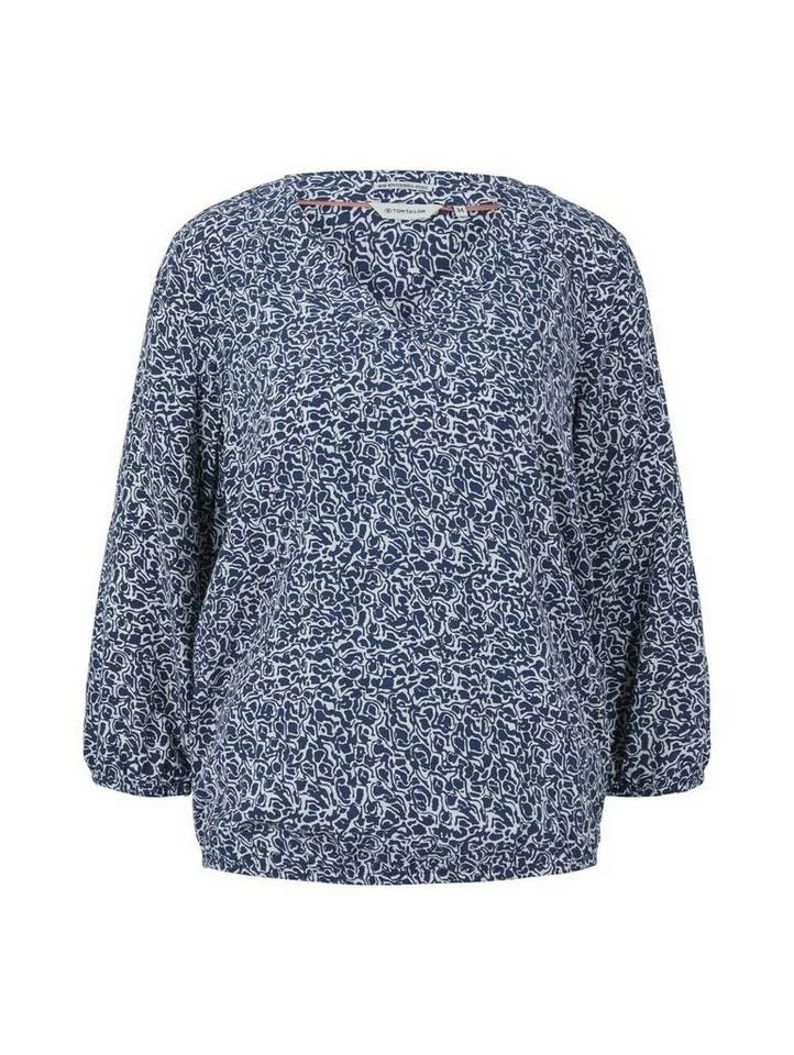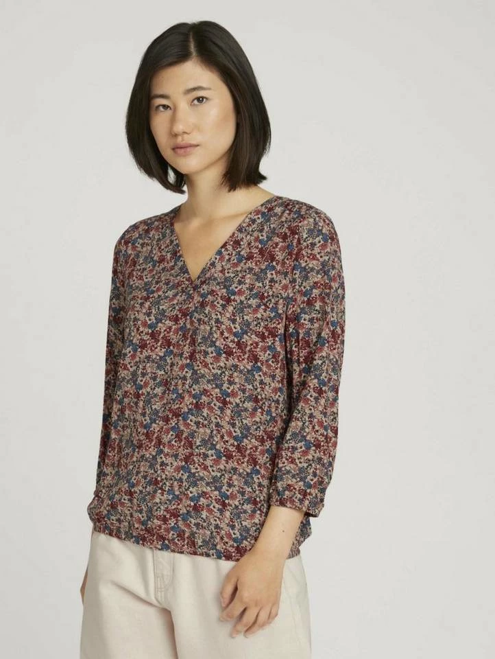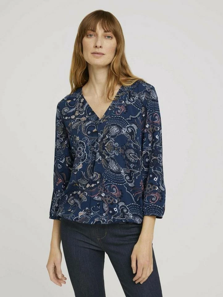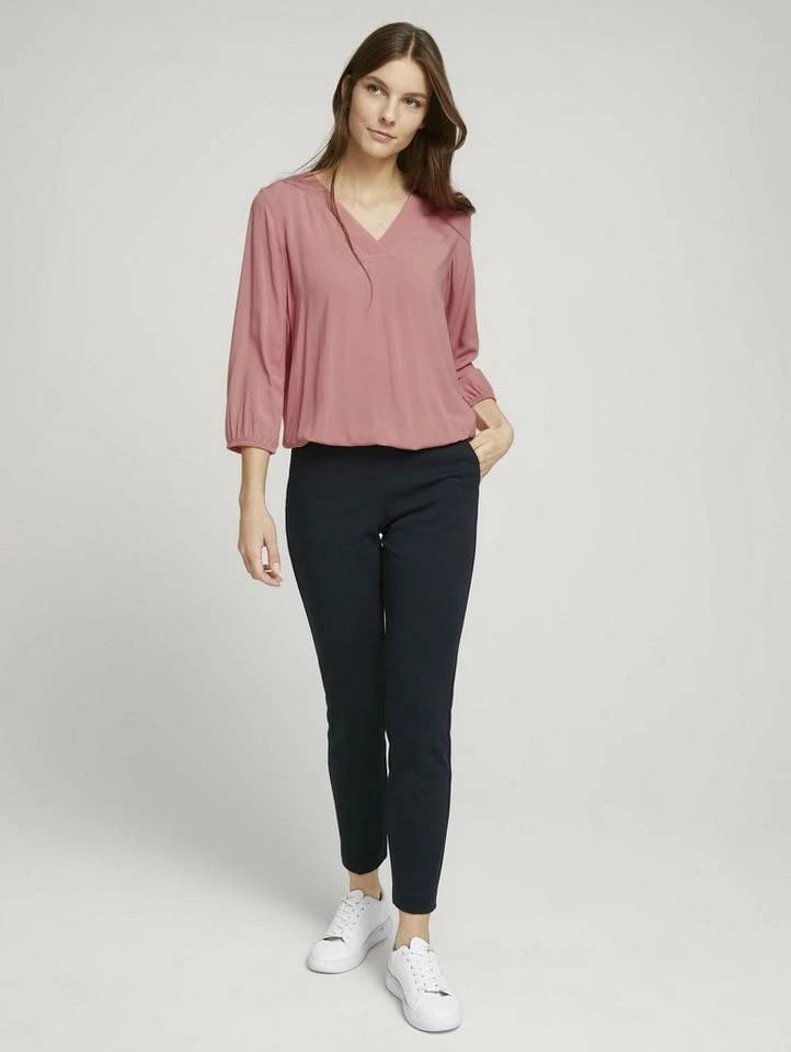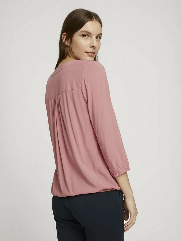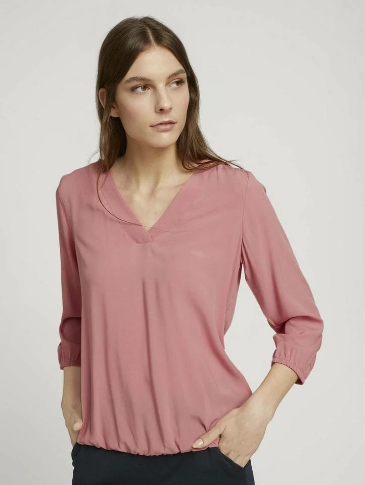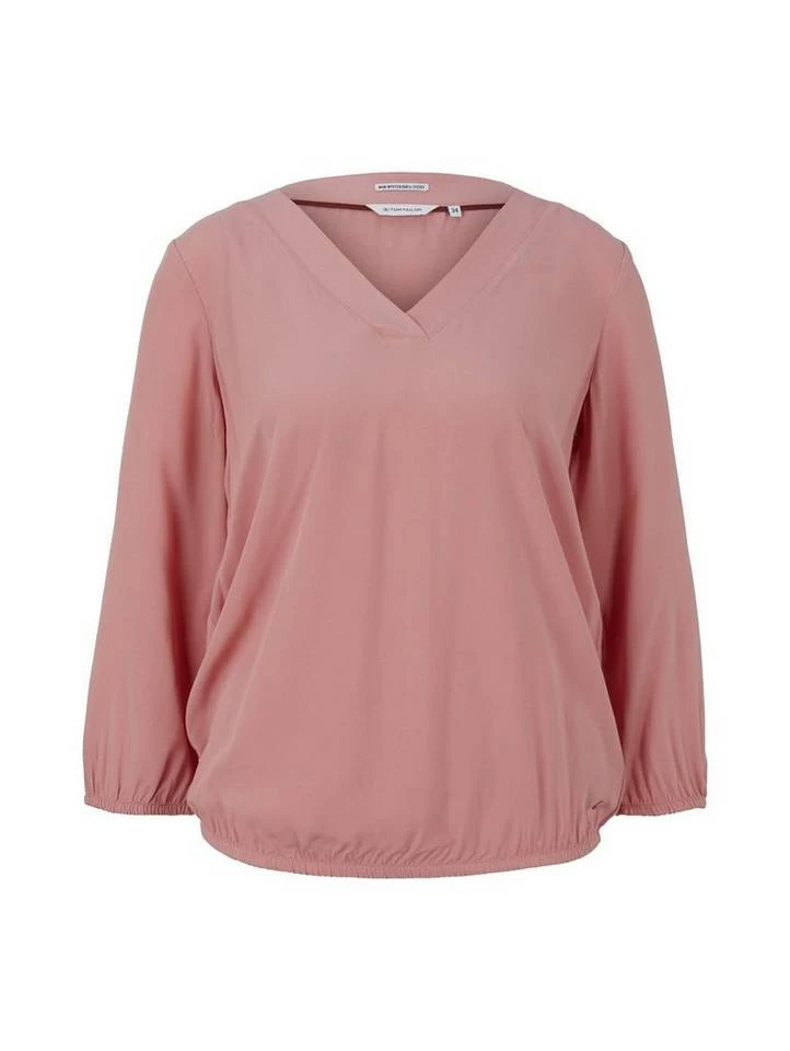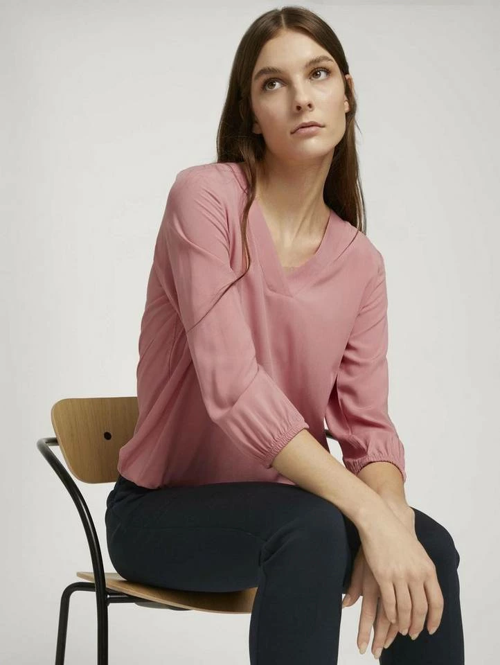 V-Ausschnitt Bluse mit LENZING(TM) ECOVERO(TM) für Frauen (3/4 Arm mit V-Ausschnitt) aus nachhaltigen und feinen Viskosefasern, mit elastischem Bund, mit Raffungen am Ärmel