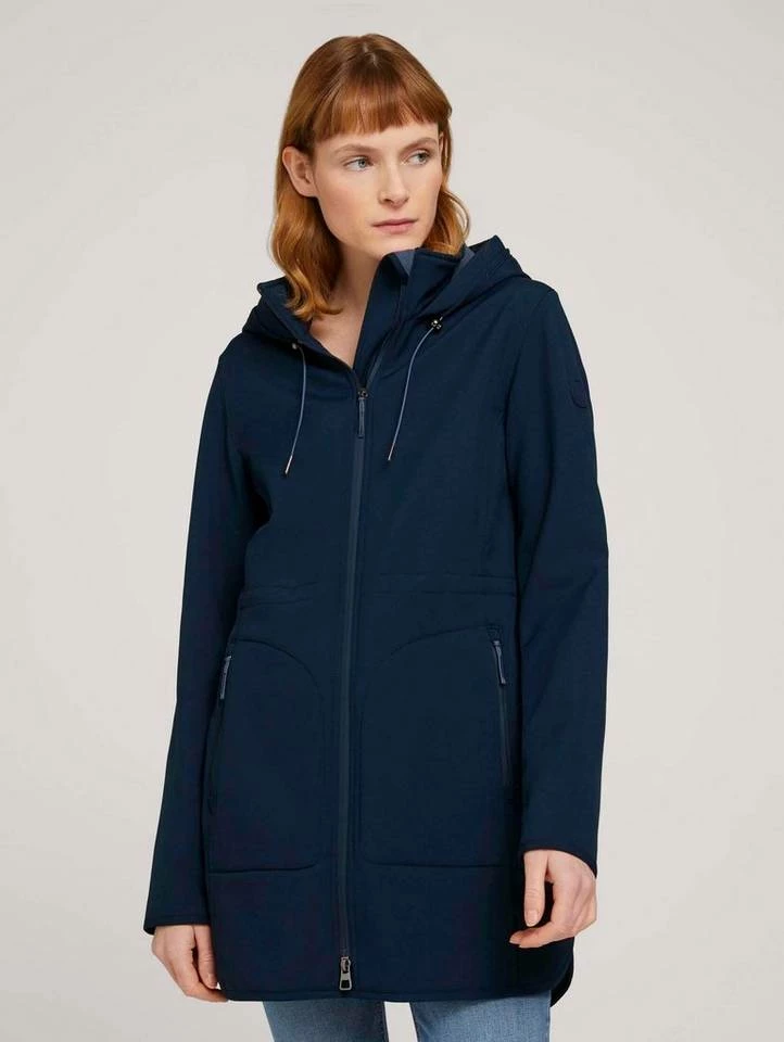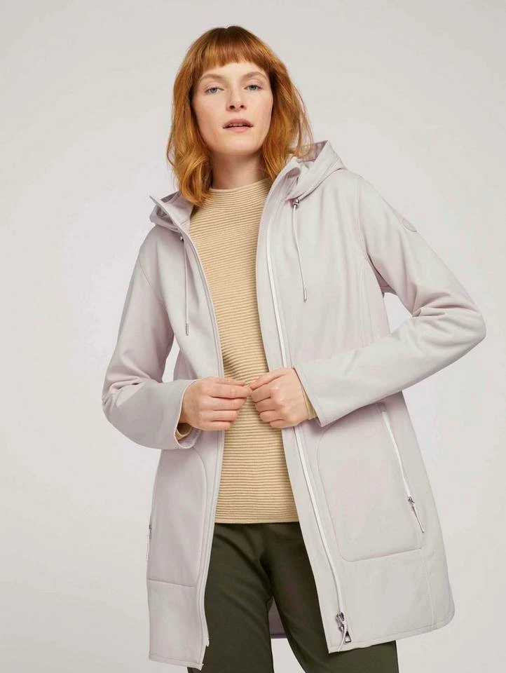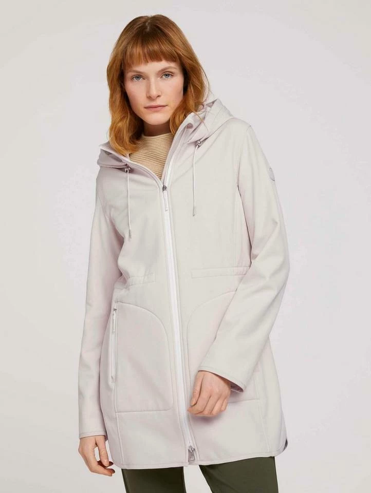 Übergangsparka mit Tunnelzug für Frauen (langärmlig mit verdeckten Zweiwege Reißverschluss) aus weichem, pflegeleichten und elastischen Gewebe, mit Tunnelzug an der Kapuze, mit seitlichen Eingrifftaschen, mit Tunnelzug an der Taille