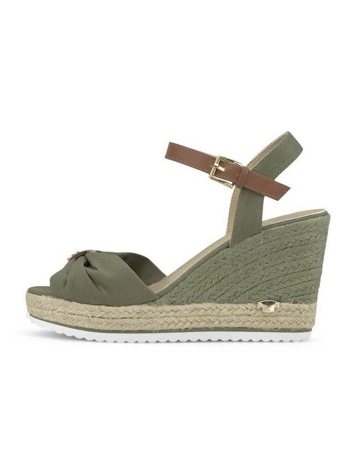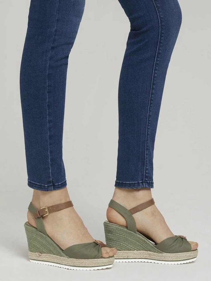Sandaletten mit Keilabsatz für Frauen (mit Schnallenverschluss) aus atmungsaktiver Baumwolle, Schaftweite ca. 9,8cm, Schafthöhe ca. 6,8cm, Absatzhöhe 10 cm, Absatztyp: Flach, mit thermoplastischer Sohle