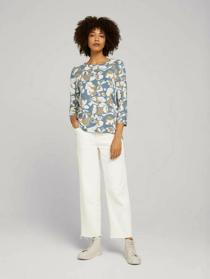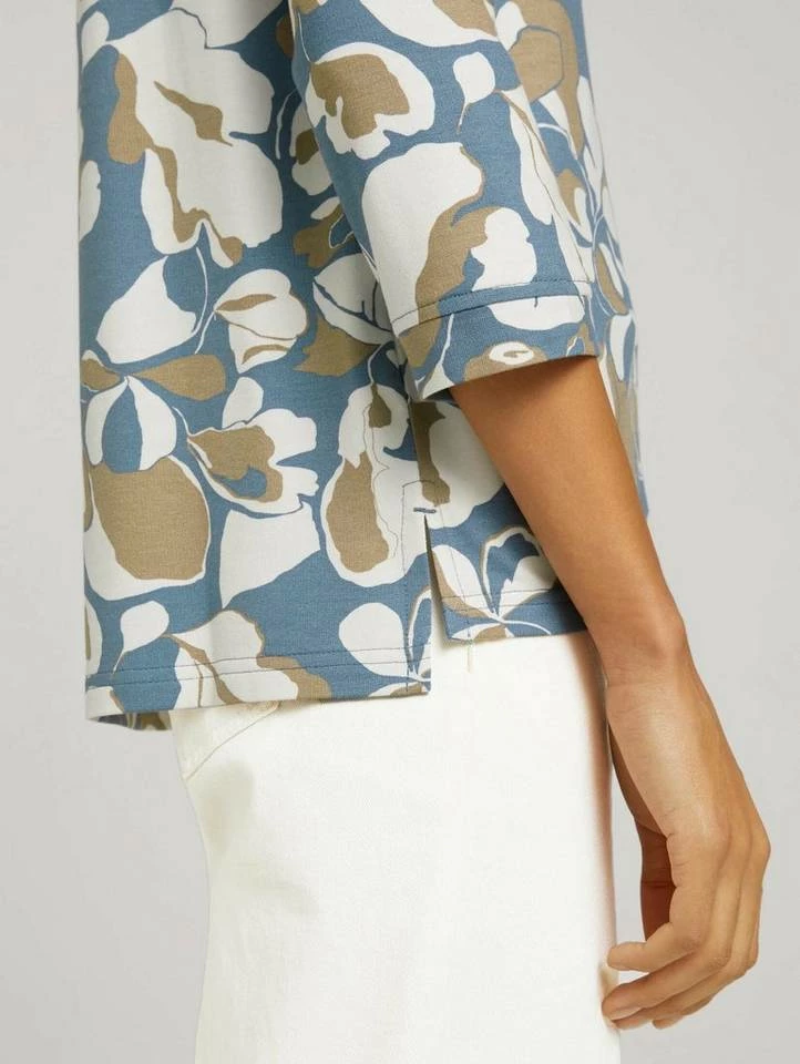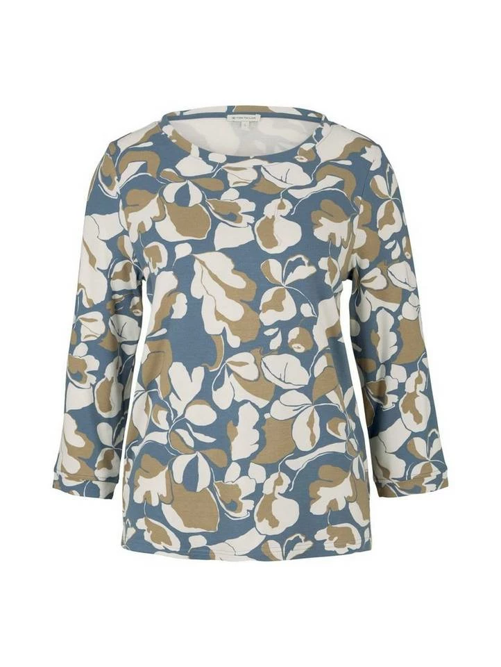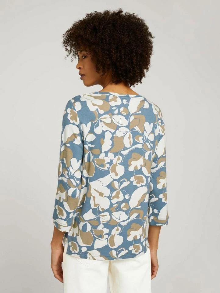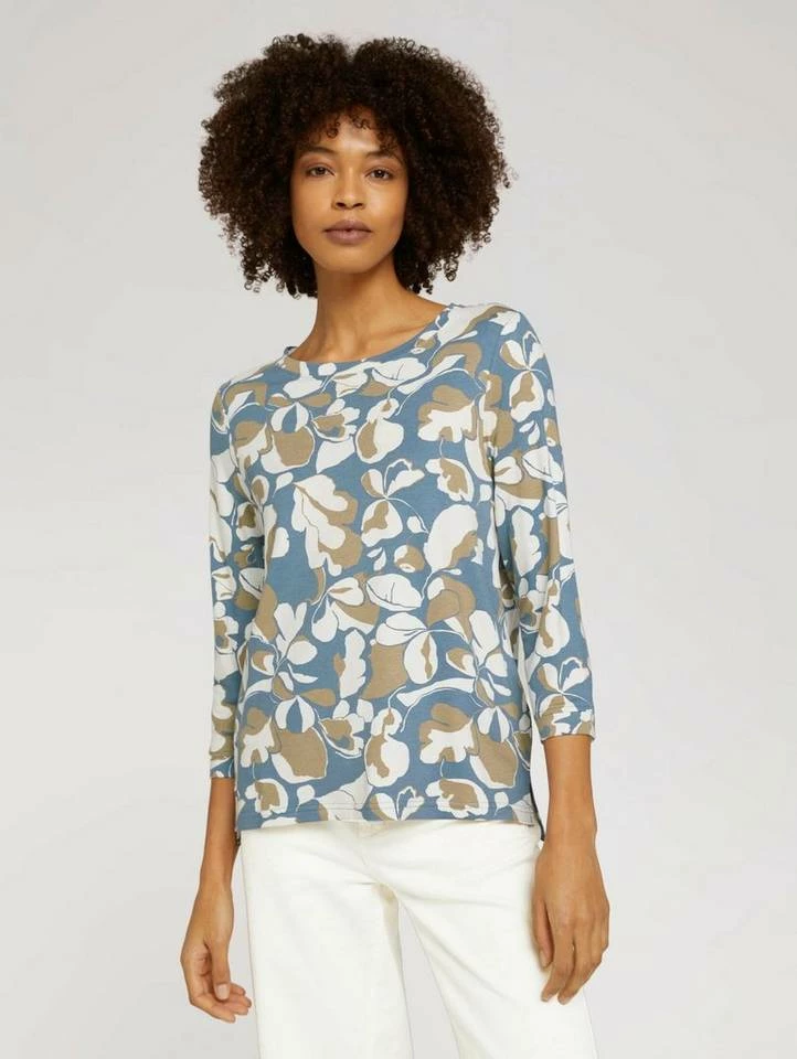 Sweatshirt mit Blumenmuster für Frauen (3/4 Arm mit Rundhalsausschnitt) aus weichem und elastischen Sweat, mit Blumenmuster, kurze Seitenschlitze