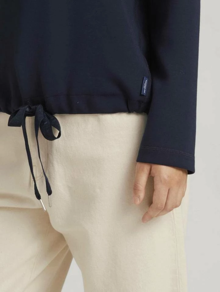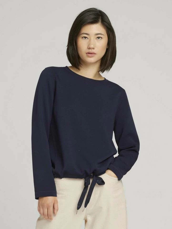 Sweatshirt mit Tunnelzug für Frauen (langärmlig mit Rundhalsausschnitt) aus robustem und elatsischem Sweat, mit Tunnelzug am Saum