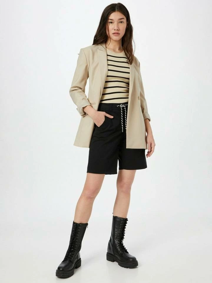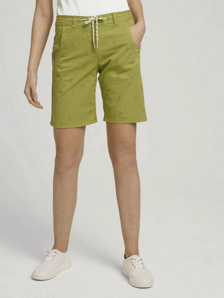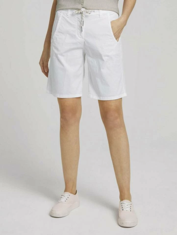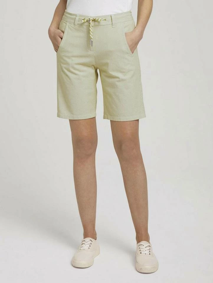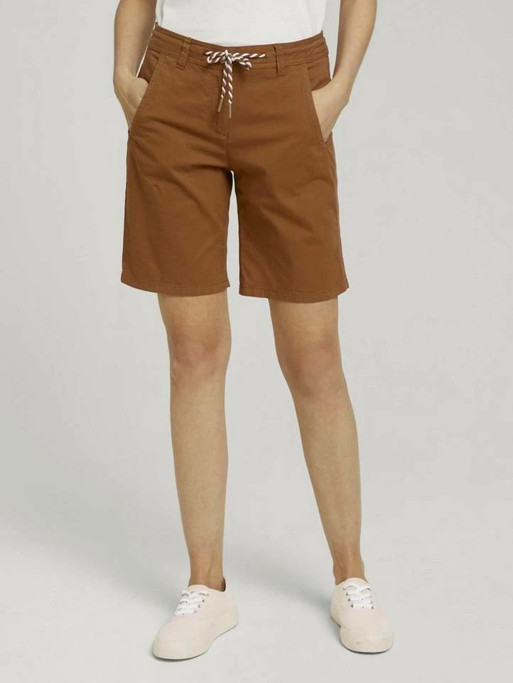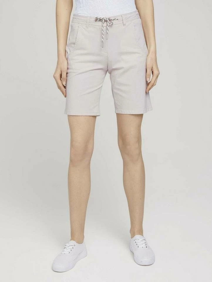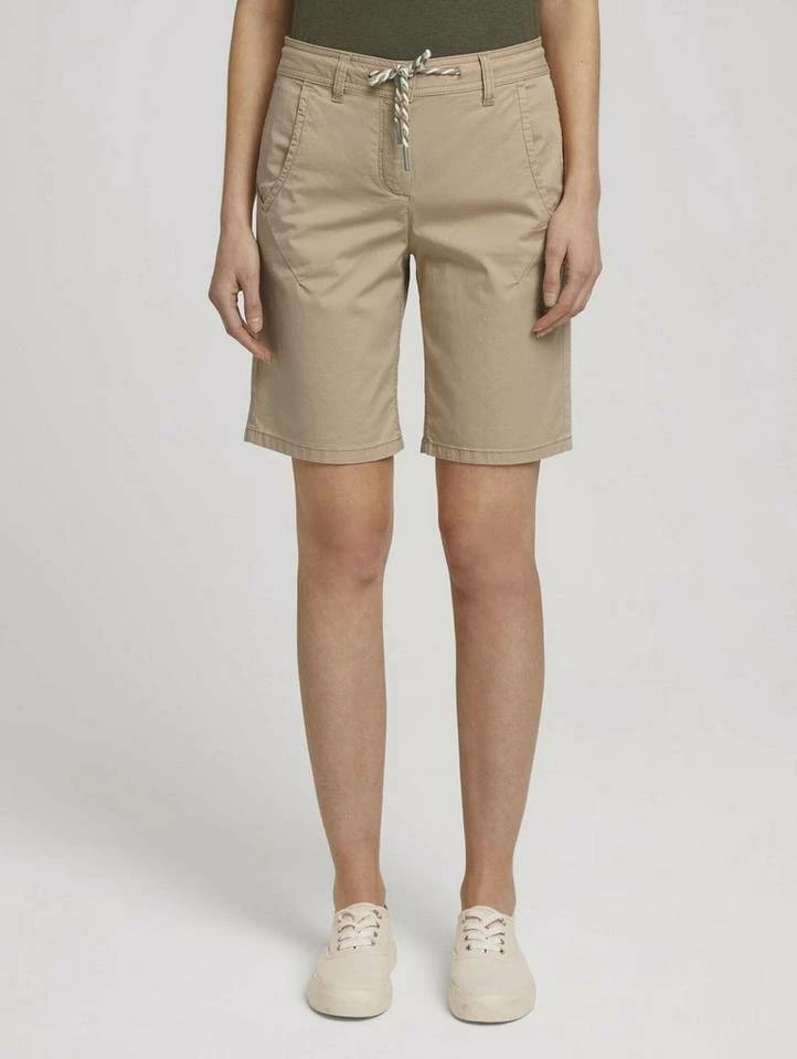 Bermuda Shorts mit Kordelzug für Frauen (mit Reißverschluss und Knopf) aus dehnbarem und strukturierten Twill, seitliche Eingrifftaschen, mit Kordelzug an der Taille