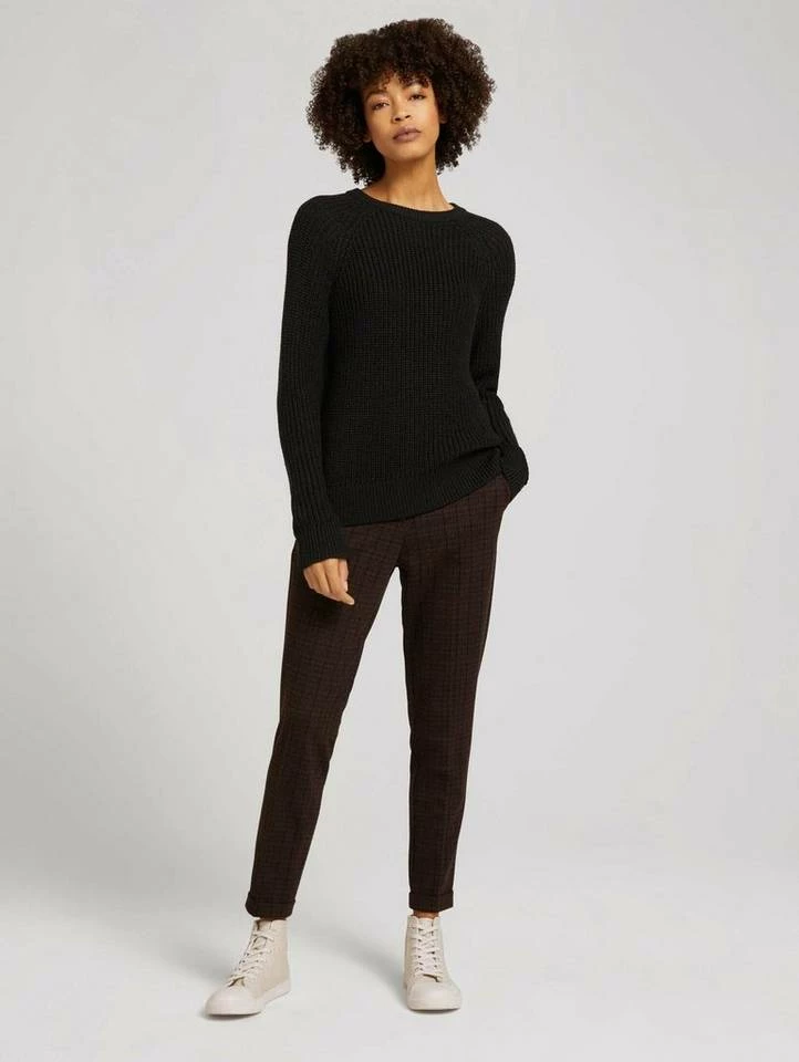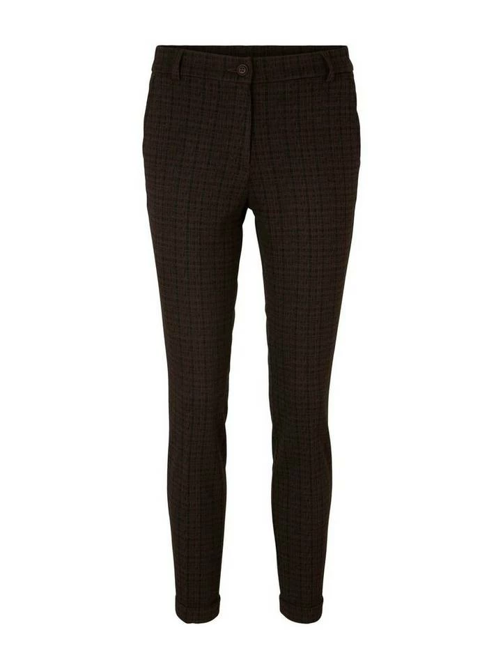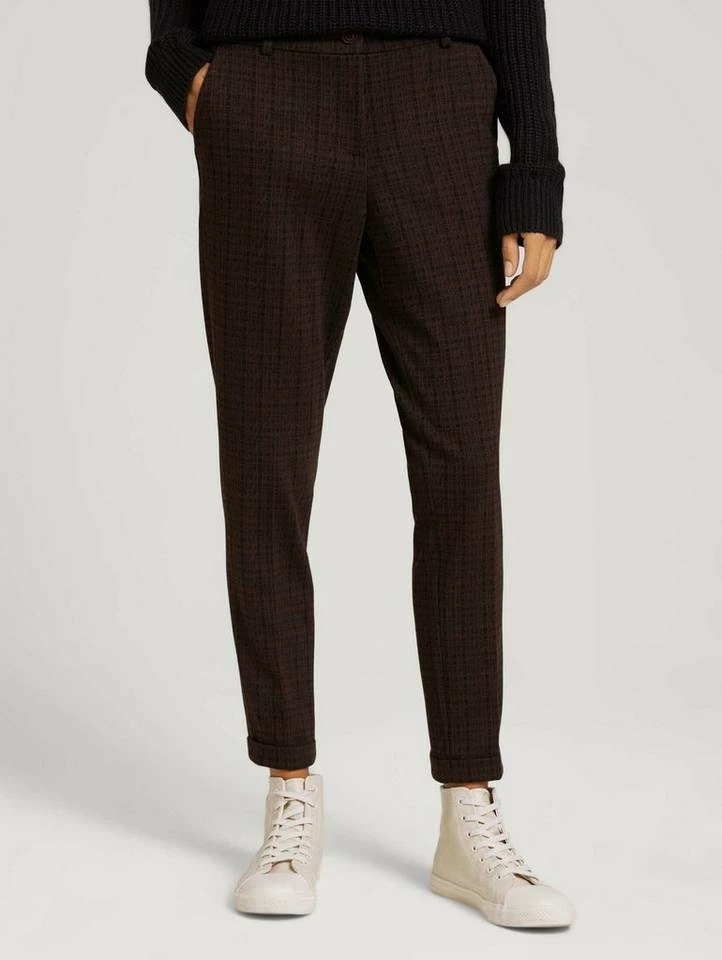 Hose mit Bügelfalten für Frauen (mit Reißverschluss und Knopf) aus gemustertem Jacquard, mit elastischem Bund, mit Bügelfalten, kariert, seitliche Eingrifftaschen