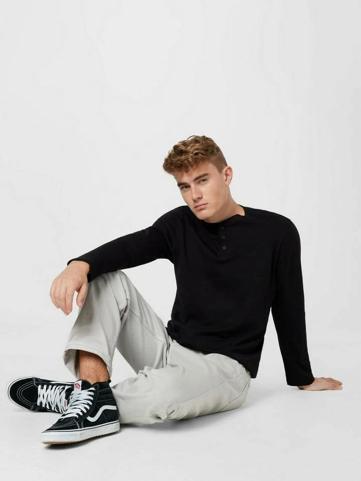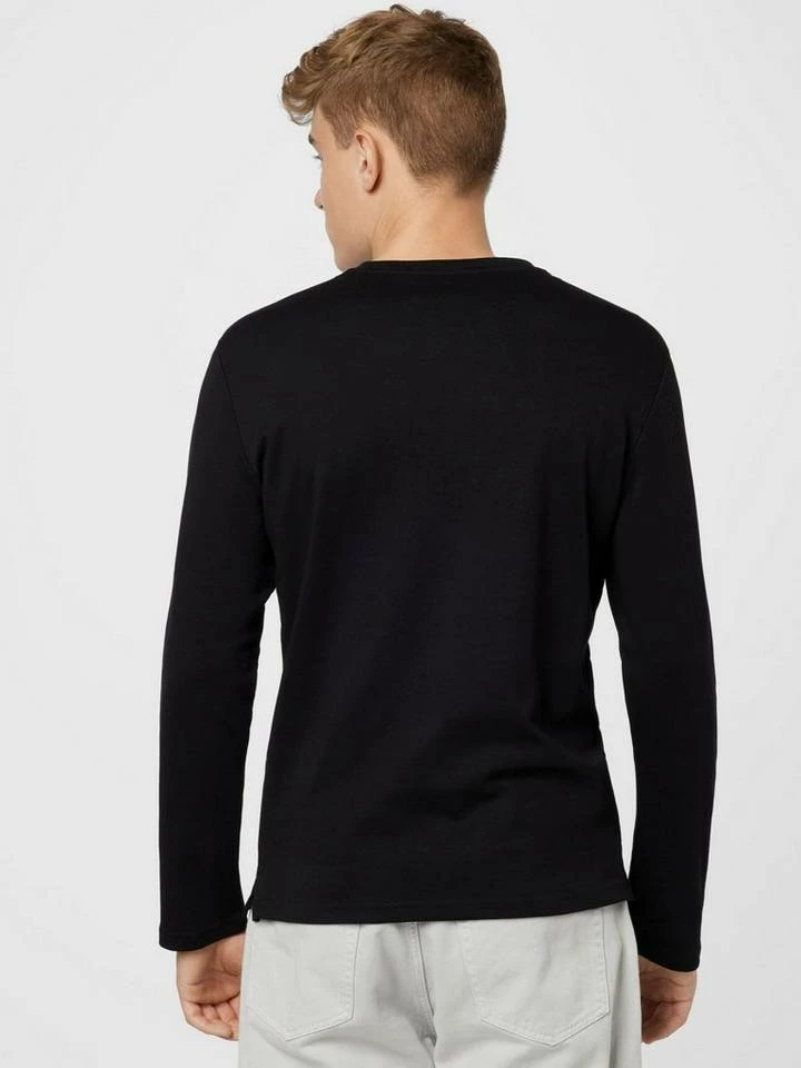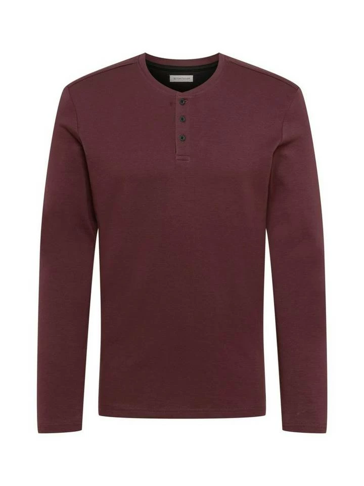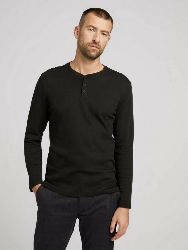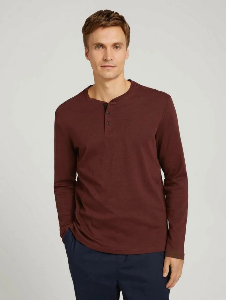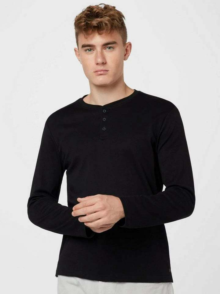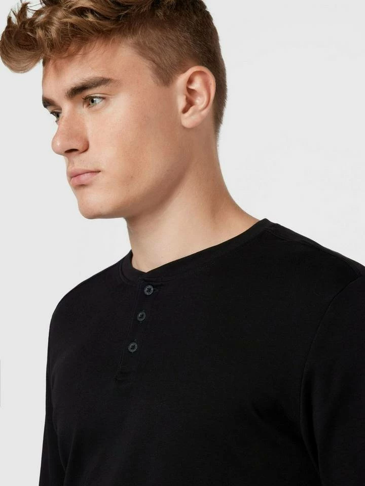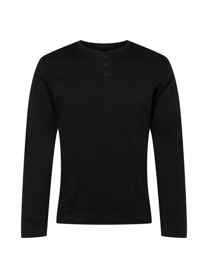 Henley Langarmshirt für Männer (langärmlig mit Henleyausschnitt) mit weicher und nachhaltiger Baumwolle, kurze Seitenschlitze, mit Logo-Badge seitlich am Saum